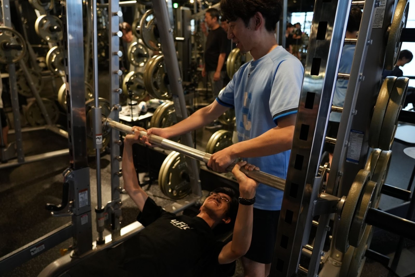 職場近くのジムを借り、トレーニングを行いました。