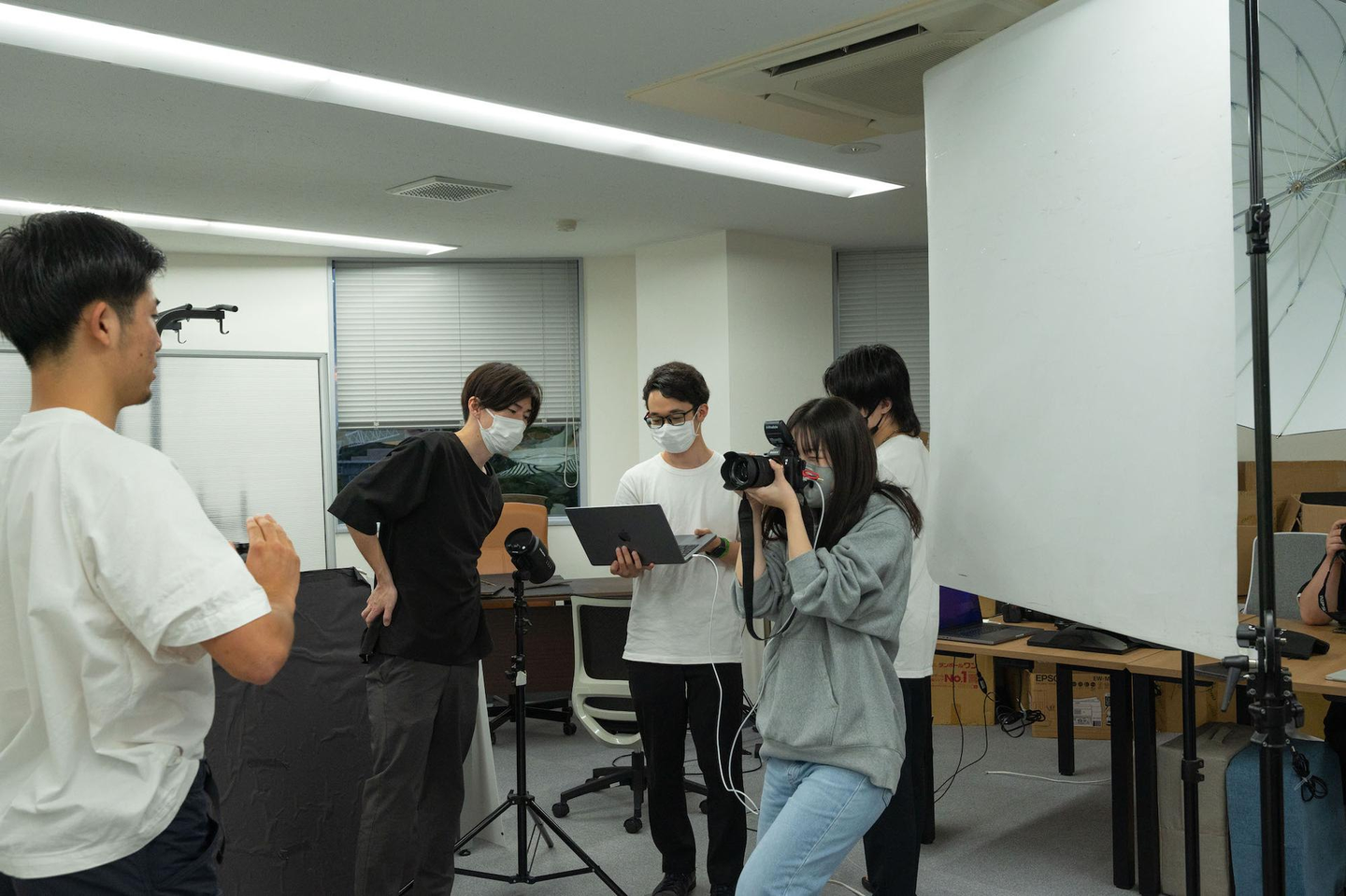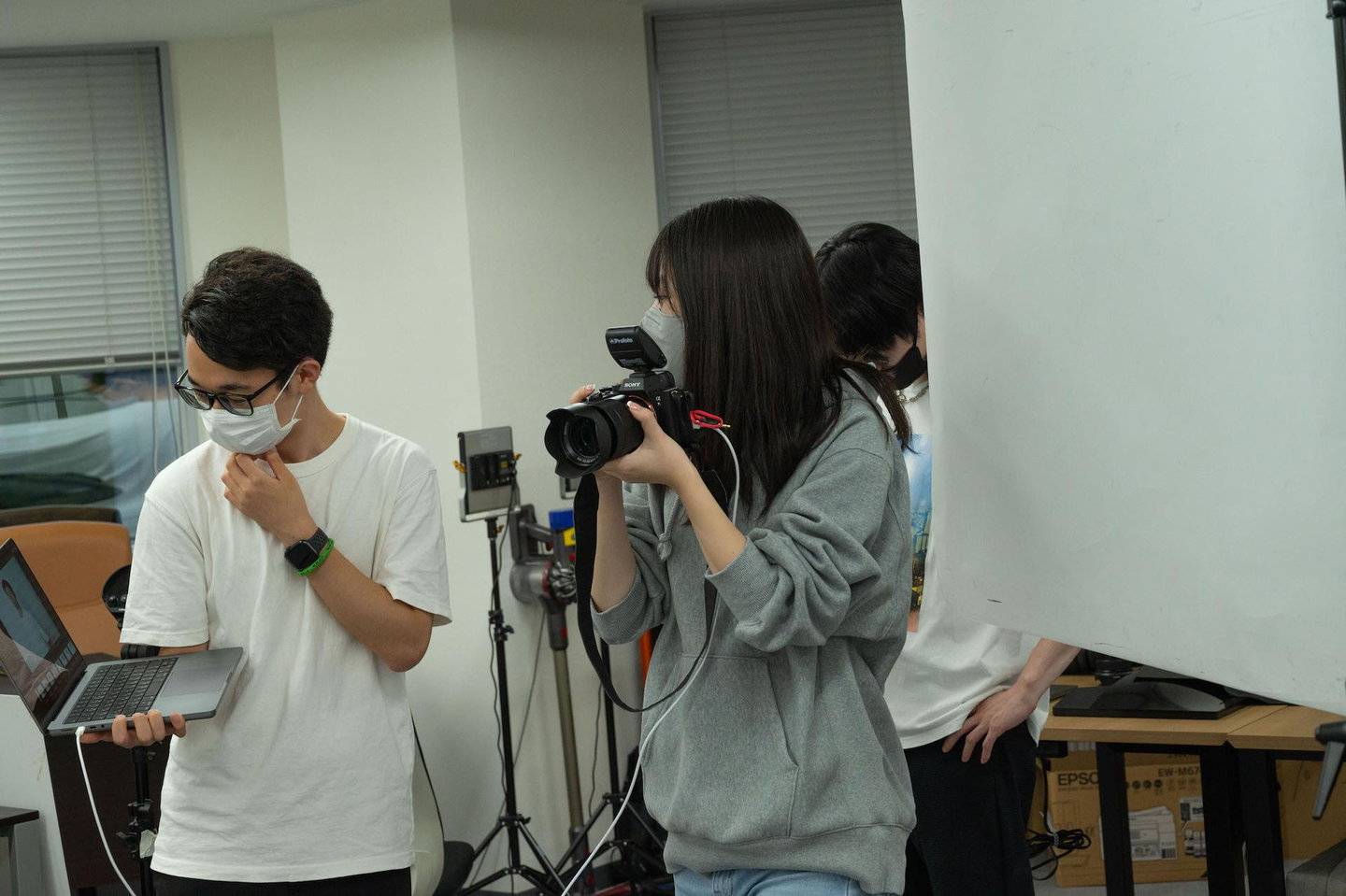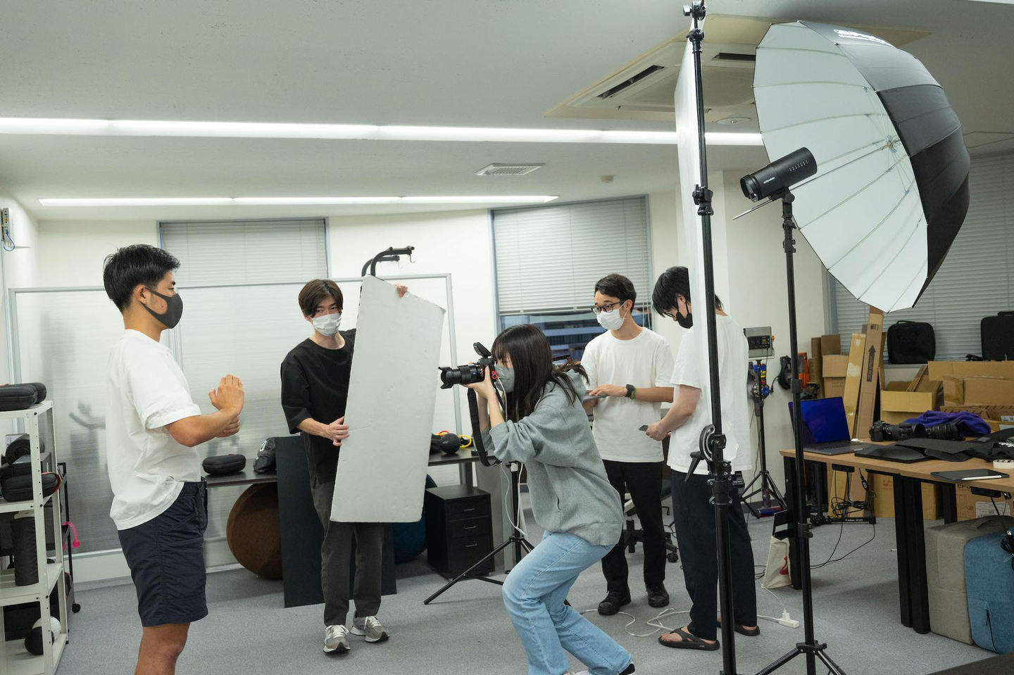 ▼ポートレートとして社員のプロフィール写真を撮る練習をする様子