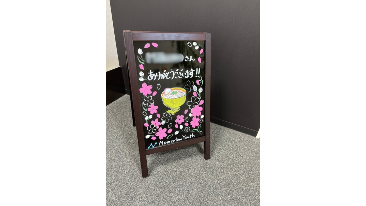せっかくいただいたうどんを美味しく食べるのはもちろん、それをくださったお客様への感謝の気持ちもしっかり伝えたい。代表をはじめ全員の思いが形となって、この日だけの特別なメッセージボードが完成!