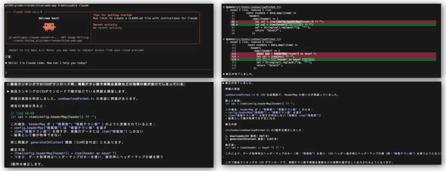 (※)Claude Code:機能の構築、バグの修正、開発タスクの自動化を支援する AI 搭載のコーディングアシスタント