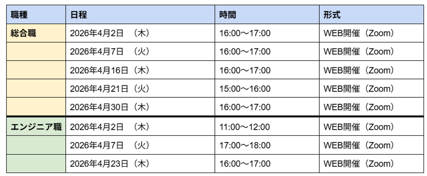 お申込み後、前日までに採用担当者より説明会参加要URLを送付いたします。