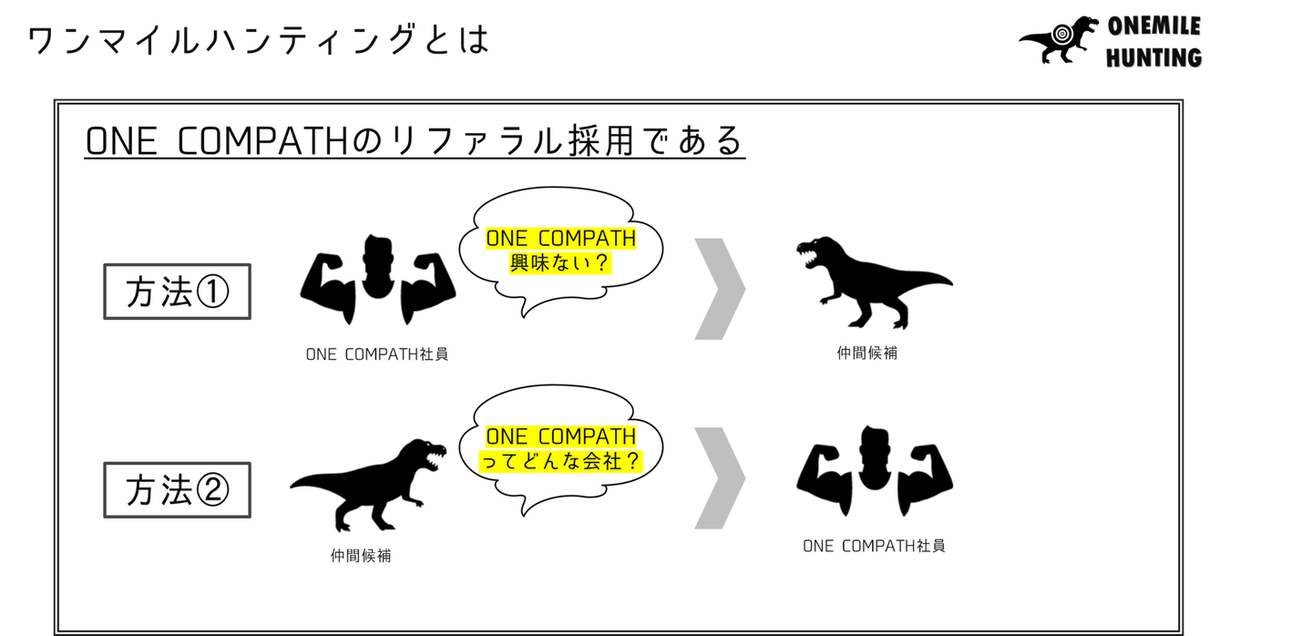 方法①:ONE COMPATHの社員がこの人と一緒に働きたい!と思った知人や友人にONE COMPATHのことを紹介するパターン。