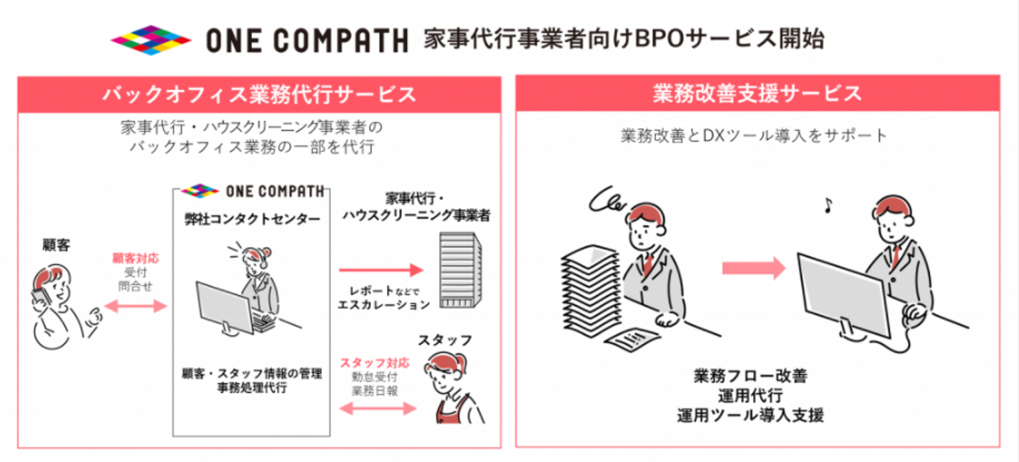 今年の8月にスタートした家事代行事業者向けの運営支援サービスは、お客様からのお問い合わせ対応や事務処理など、バックオフィス業務の一部を事業者様に代わって代行しています。またITツール導入による業務効率改善のサポートも行います。