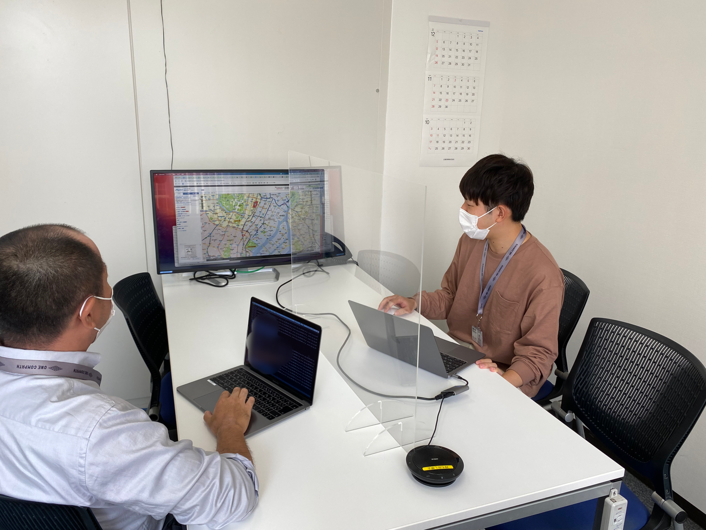 出社をする日は同じ部署の方々と合わせて出社をしているので、写真のように面と向かって打ち合わせをしています。