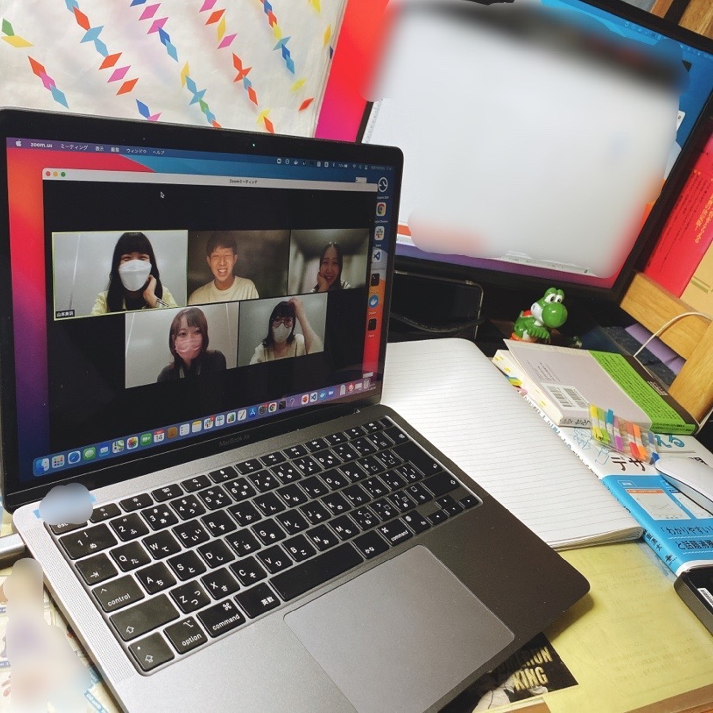 リモートワークの日はオンラインで自宅と会社を繋ぎ、打ち合わせなどを行っております。