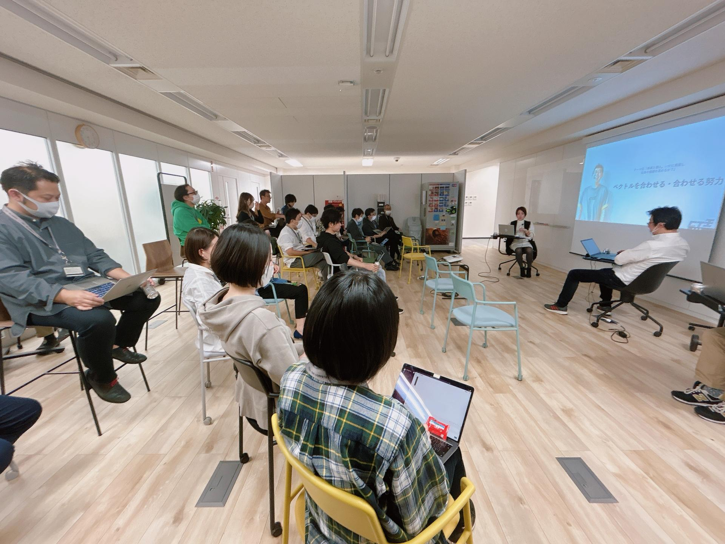ノリの良いプロジェクトメンバーに乗せられ、写真撮影が行われ、ポスターが制作され、社内告知を行い、さらに企画部門代表として西澤GM、人事責任者の大橋GMがモデレータを快諾してくれ、2回にわたって柴田塾を開催することになりました。本当にあっという間でした。