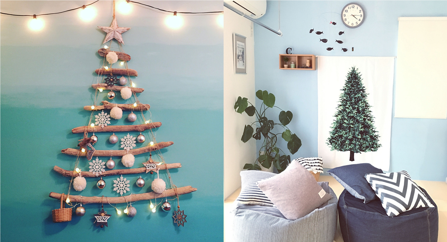 2016年〜2017年までは、ツリーではなく枝にオーナメントを飾る「枝ツリー」や、壁に流木でツリーの形を模して飾り付ける「流木ツリー」、ツリーの写真が印刷されたタペストリーが多く見受けられました。