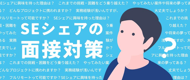 こんにちは! 「人材を“人財”と考えるIT社会の確立を」というミッションを掲げる、株式会社SEシェアです。「SESの常識を変えたい」「エンジニアが安心して働ける仕組みをつくりたい」――そんな想いから設立した当社は、設立2年目に成長率200%超を記録するなど、急成長を続けています。少しでも興味を持ってくださった方に向けて、SEシェアの採用情報をまとめたサマリ記事を作成しました。ぜひ参考にしていただき、私たちの想いに触れていただけたら幸いです!1. SEシェア公式HP2. 採用情報選考フロー(全体像)書類選考- 履歴書や職務経歴書などをもとに、あなたのスキルや経験をチェック面接(オンライン-...