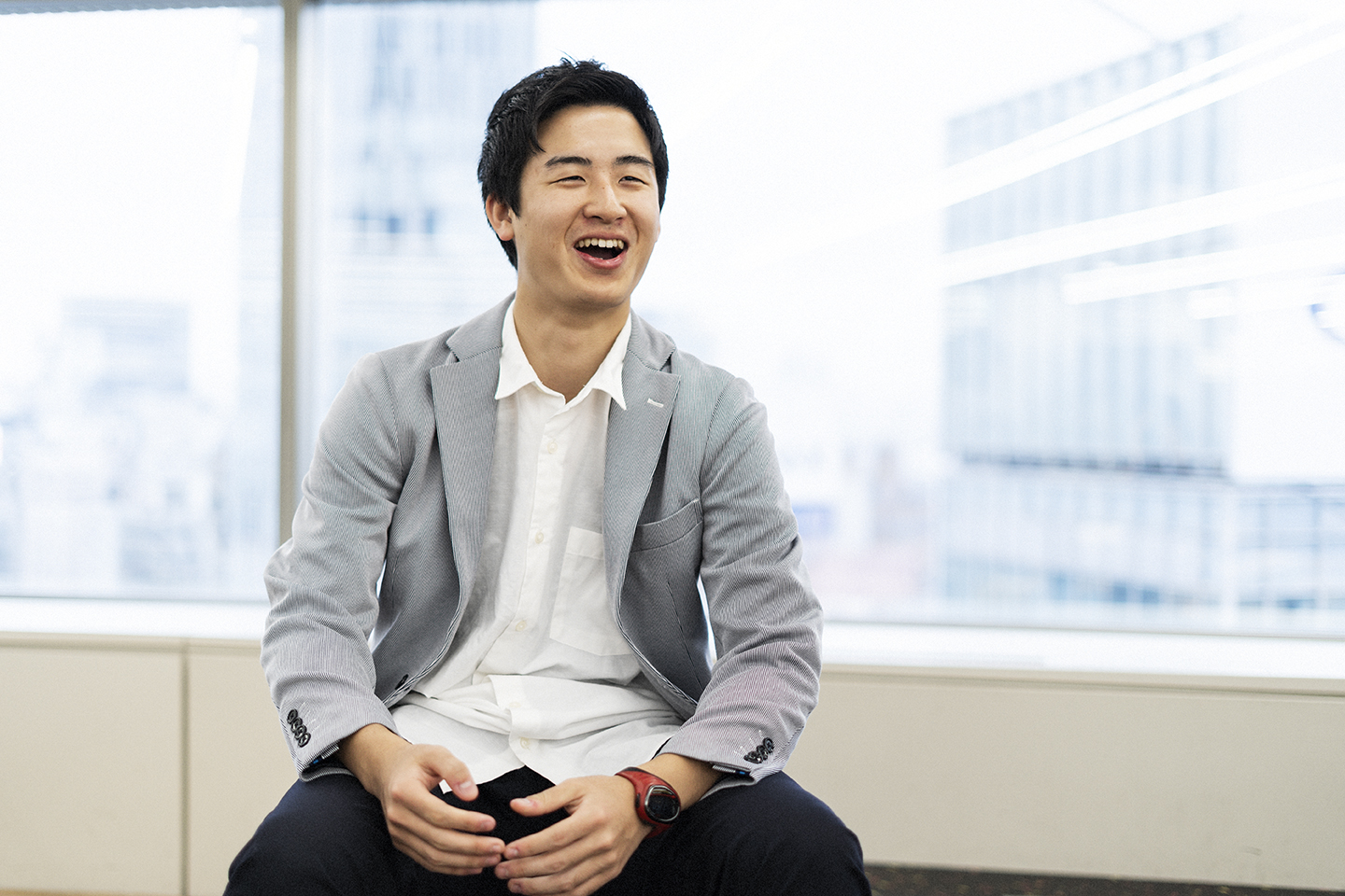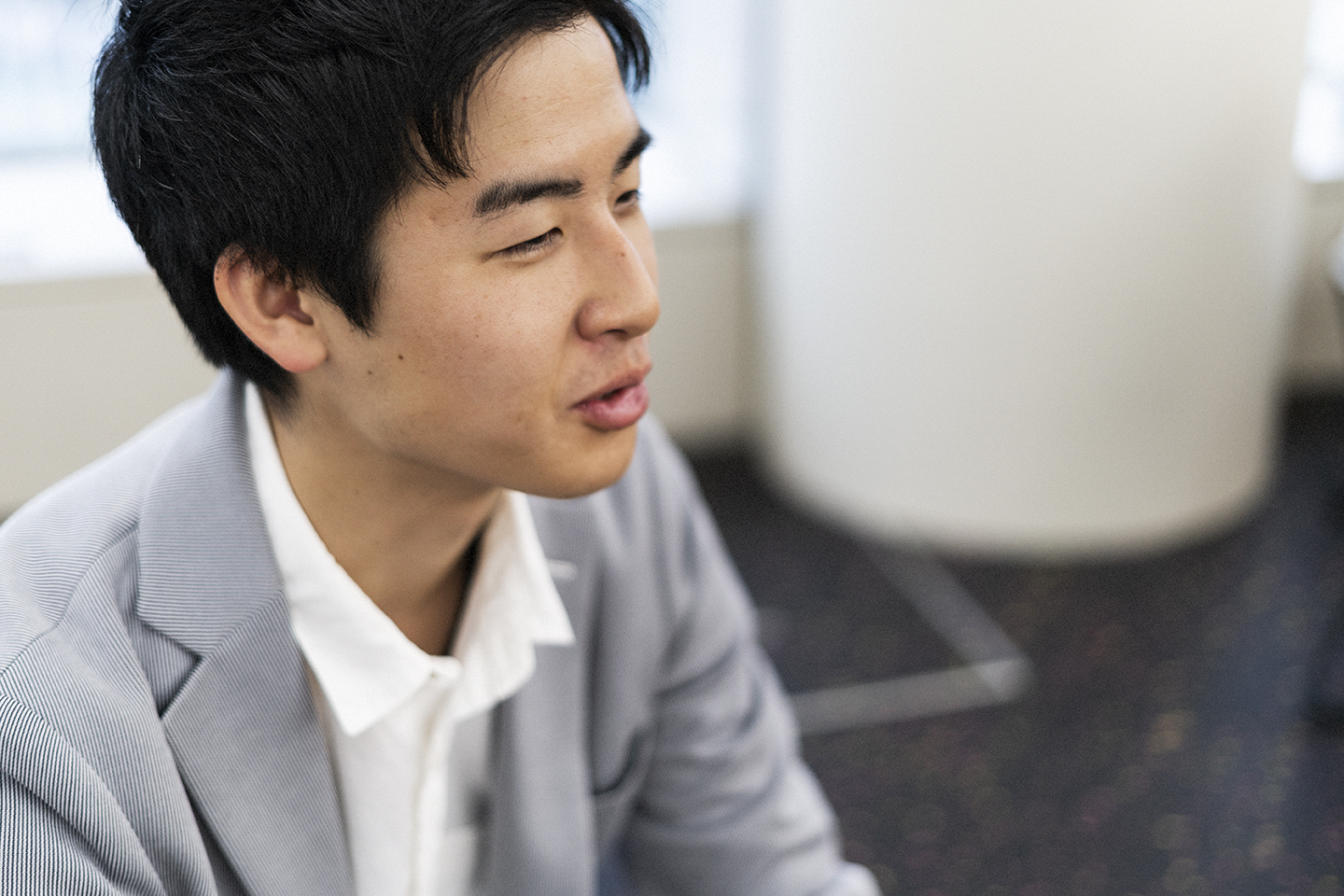 最初にインタビューを引き受けてくれたのは、グローバル戦略統括部で内定者インターンをしている笠場です。