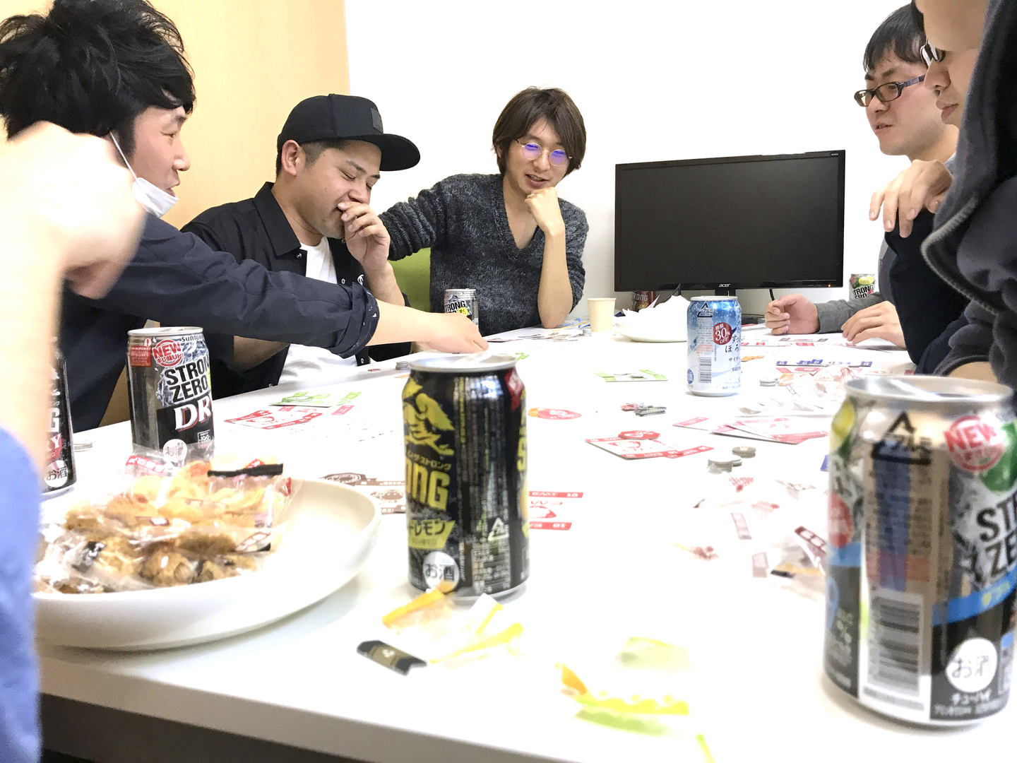 当日は、同じ第一暁ビルに入居するIncrementsの方など社外からも参加があり、ストロングゼロを片手にゲームがはじまりました。