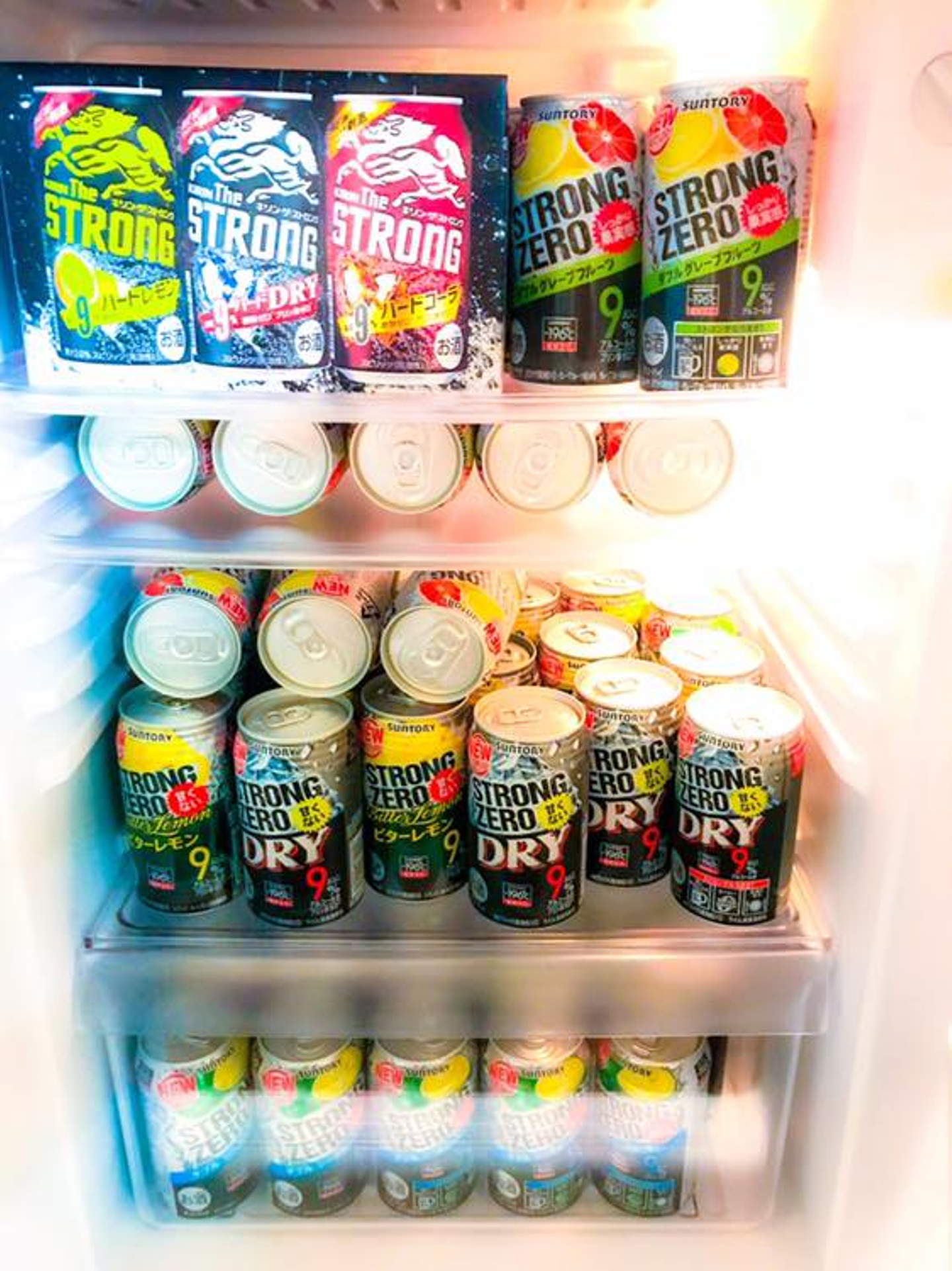 ・冷蔵庫にぎっしり詰められたストロングゼロ。クラフトビールは1本も無い