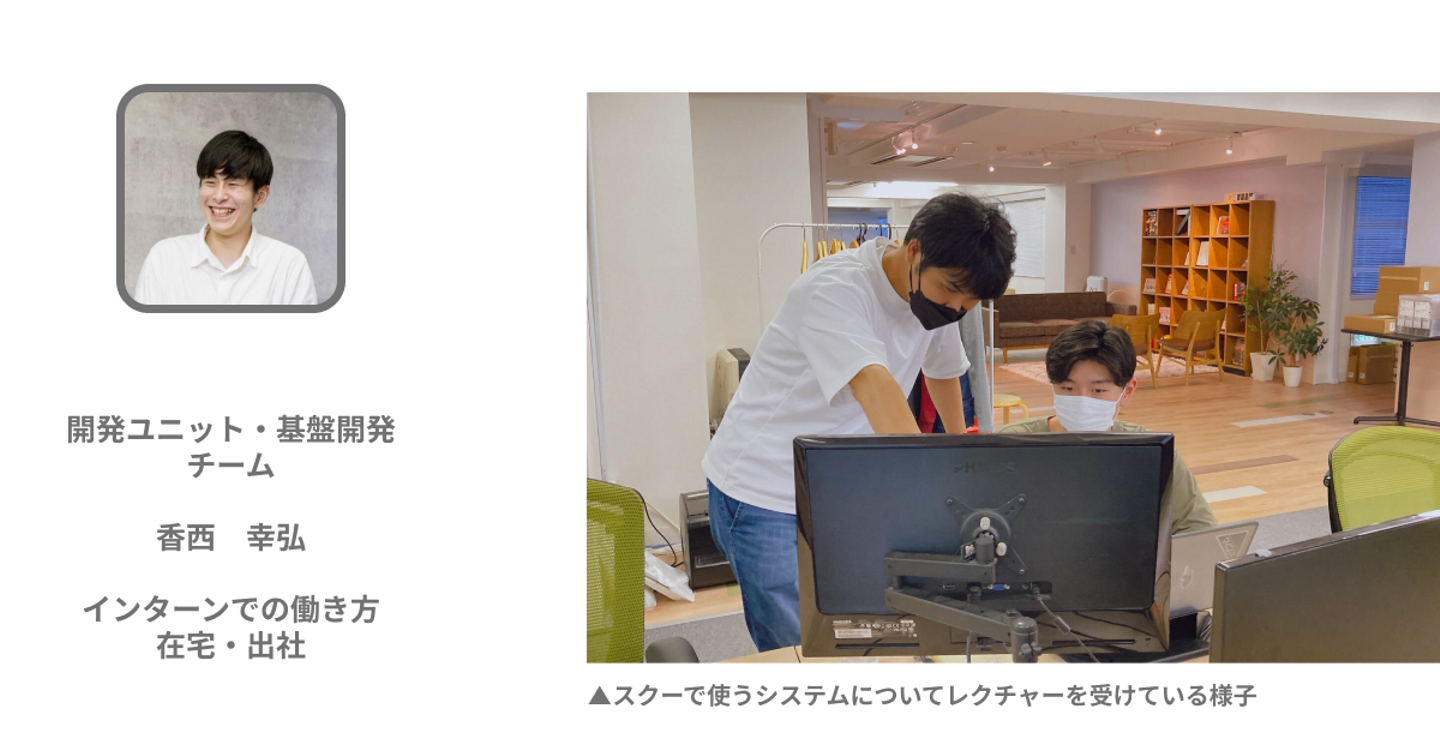 また、スクーが大切にしているミッションやビジョンなどの価値観を業務を通じて感じ取り、より多くのメンバーとコミュニケーションして繋がりをつくることで、本配属後も不安なく立ち上がれる準備ができることを期待しています。