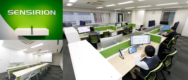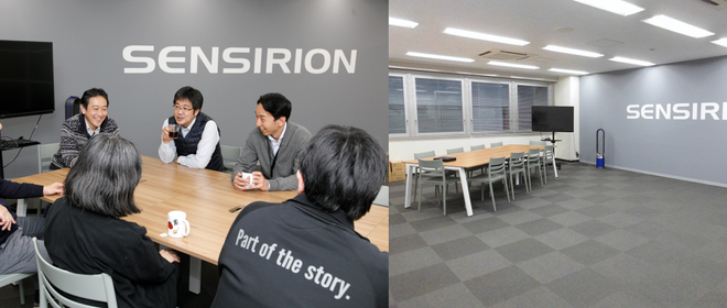 2021年11月末に引っ越ししたばかりの新しい事務所です。センシリオンのコーポレートカラーであるグリーンと白を基調にした事務所です。コロナ禍に合わせて、席の間隔を十分にとっているので安心して仕事に取り組めます。席はフリーアドレスのため、その日の気分に合わせて場所を変えて作業できます。ミーティングルームは3部屋(大/中/小)あり、使用人数に合わせて使い分けできます。営業はスイス本社との電話でのやり取りが多いため、オフィス内に電話ブースも設置しています。他の社員に気兼ねすることなく会話できます。