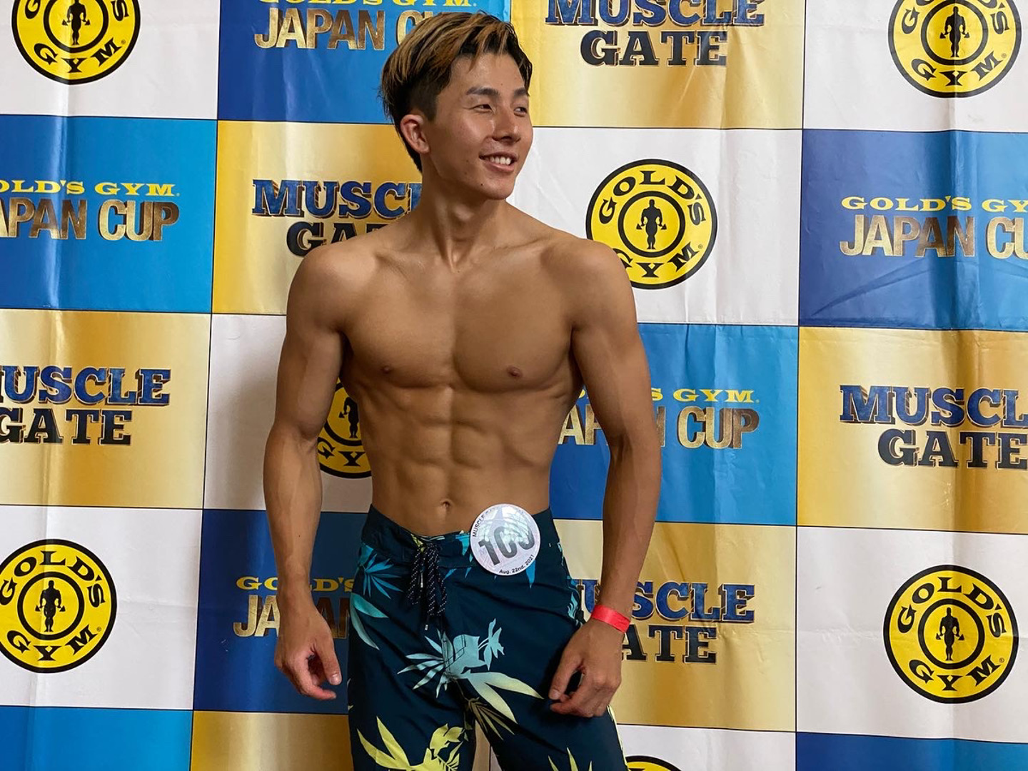 大学4年生でフィジークに出場した際の写真。本人いわく、「減量しんどいのでもうやりません…(笑)」とのこと。