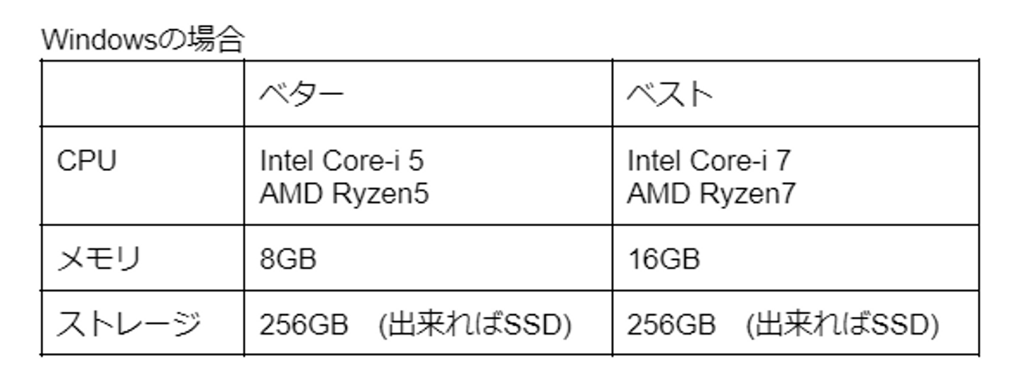 128GBのストレージでも問題ないかもしれないですが、将来性を考えると256GB以上を搭載しているPCを選びましょう。