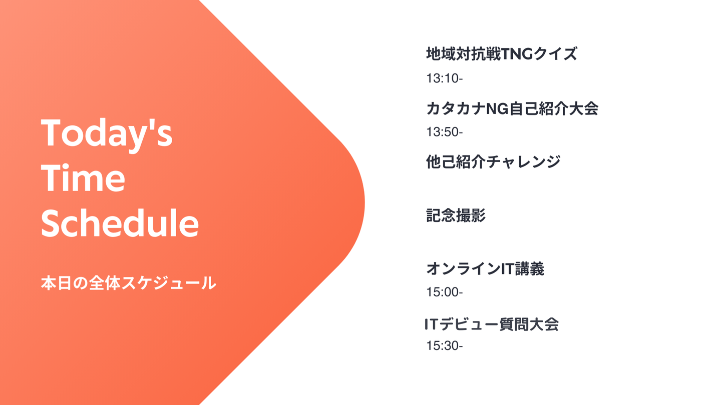チームに別れて、自分の携わっている業務や趣味をカタカナNGで自己紹介をするのですが・・・