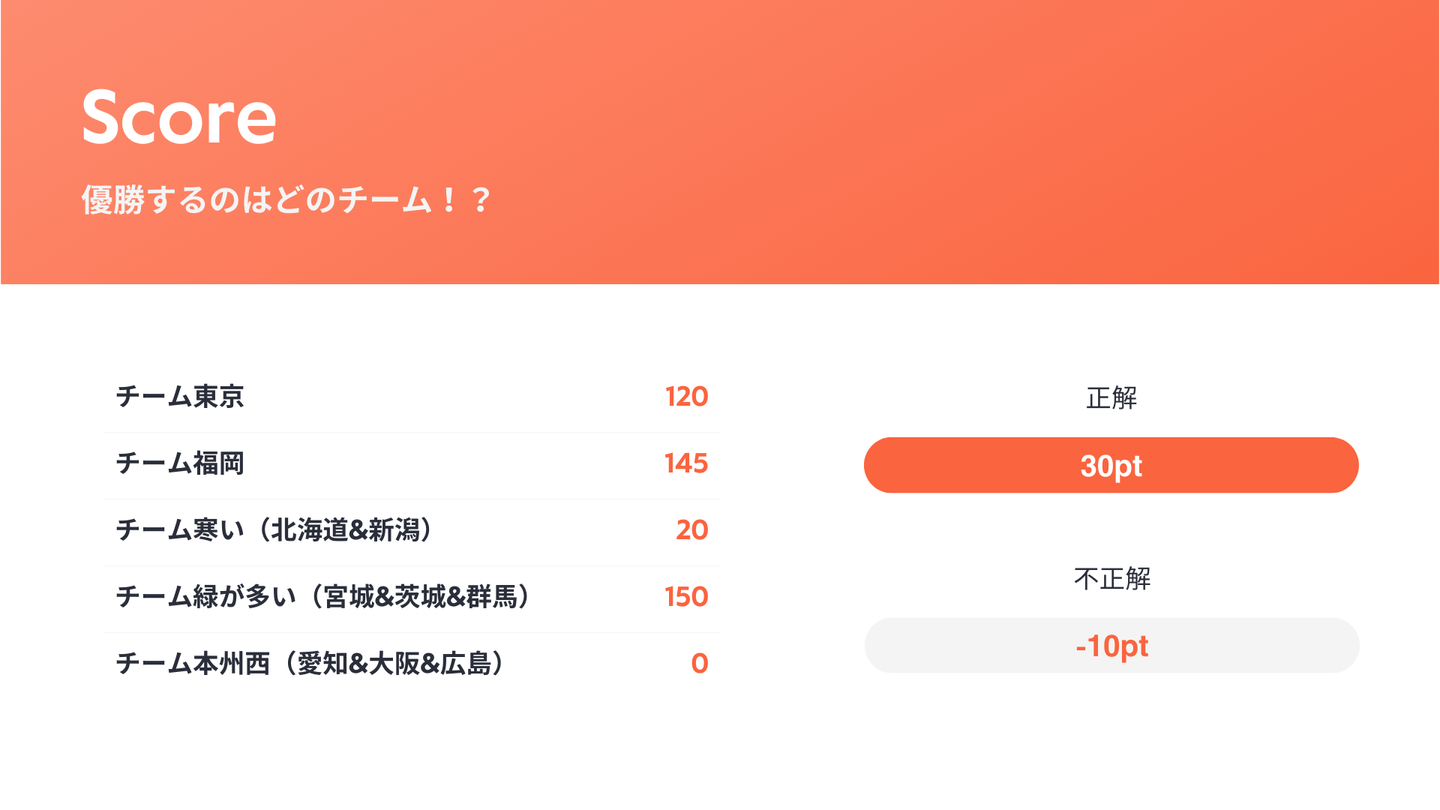 スタートを切った地域対抗戦クイズでは、それぞれの各地域のチームに別れて早押しクイズゲームが始まりました!