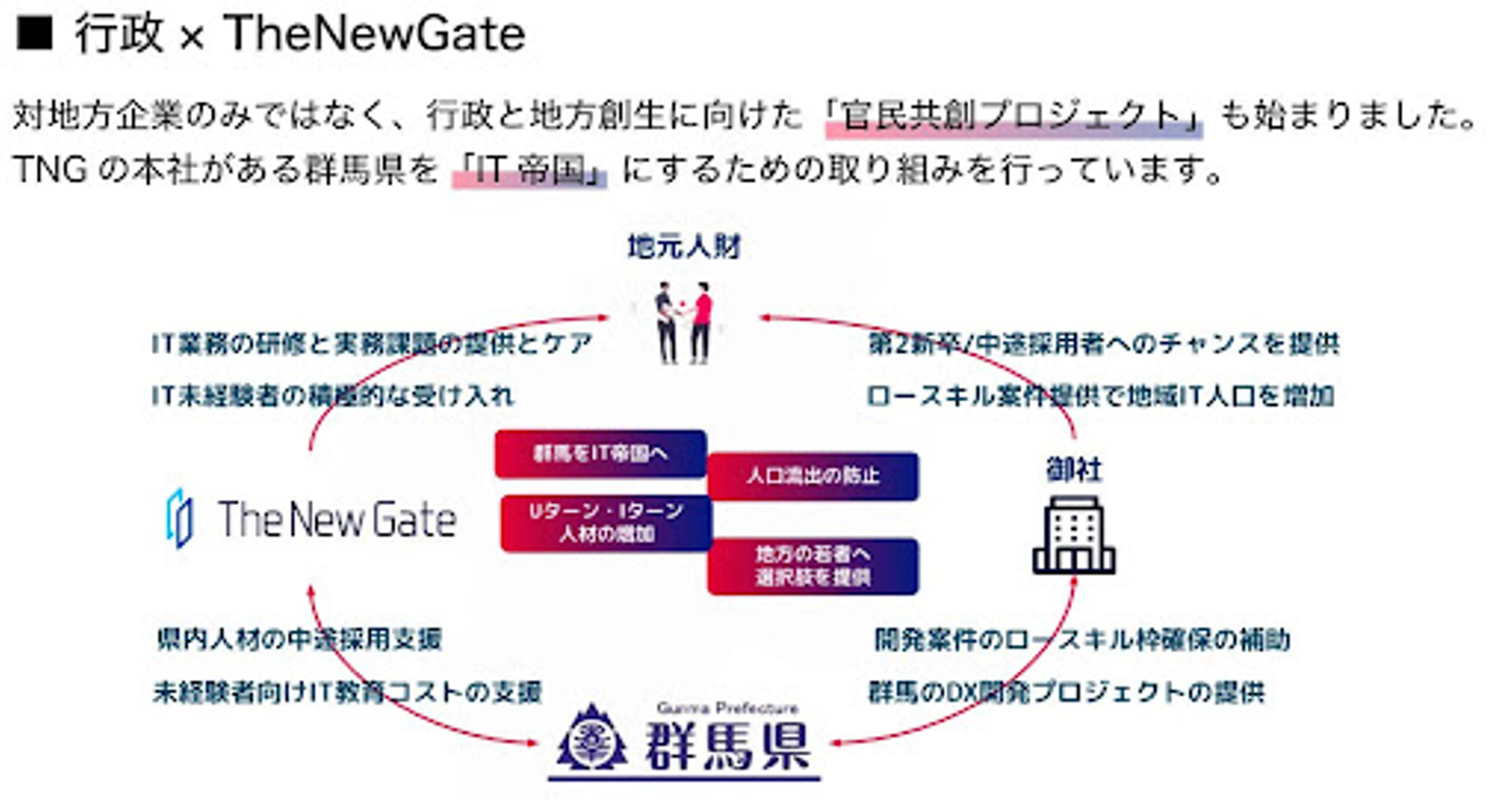 まずはTheNewGateの本社がある群馬県を「IT 帝国」にするために下記の取り組みを実施しています。