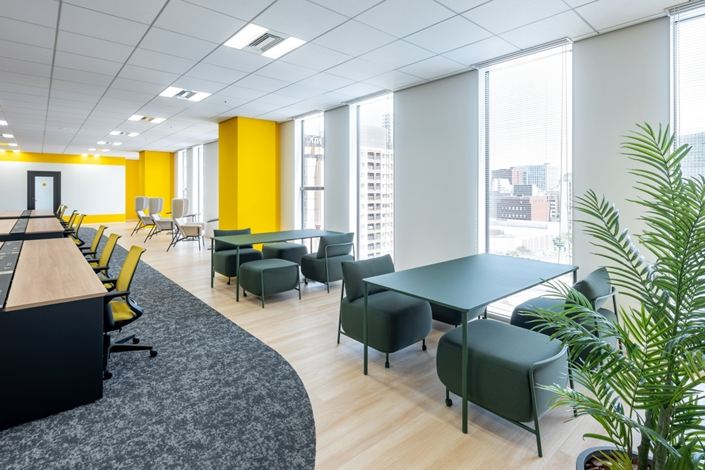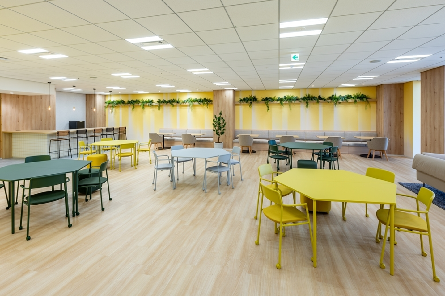 開放感溢れるフリースペースやコミュニケーションが取りやすいカフェスペースやテーブル、商談に集中できるフォンブースなども完備しています。