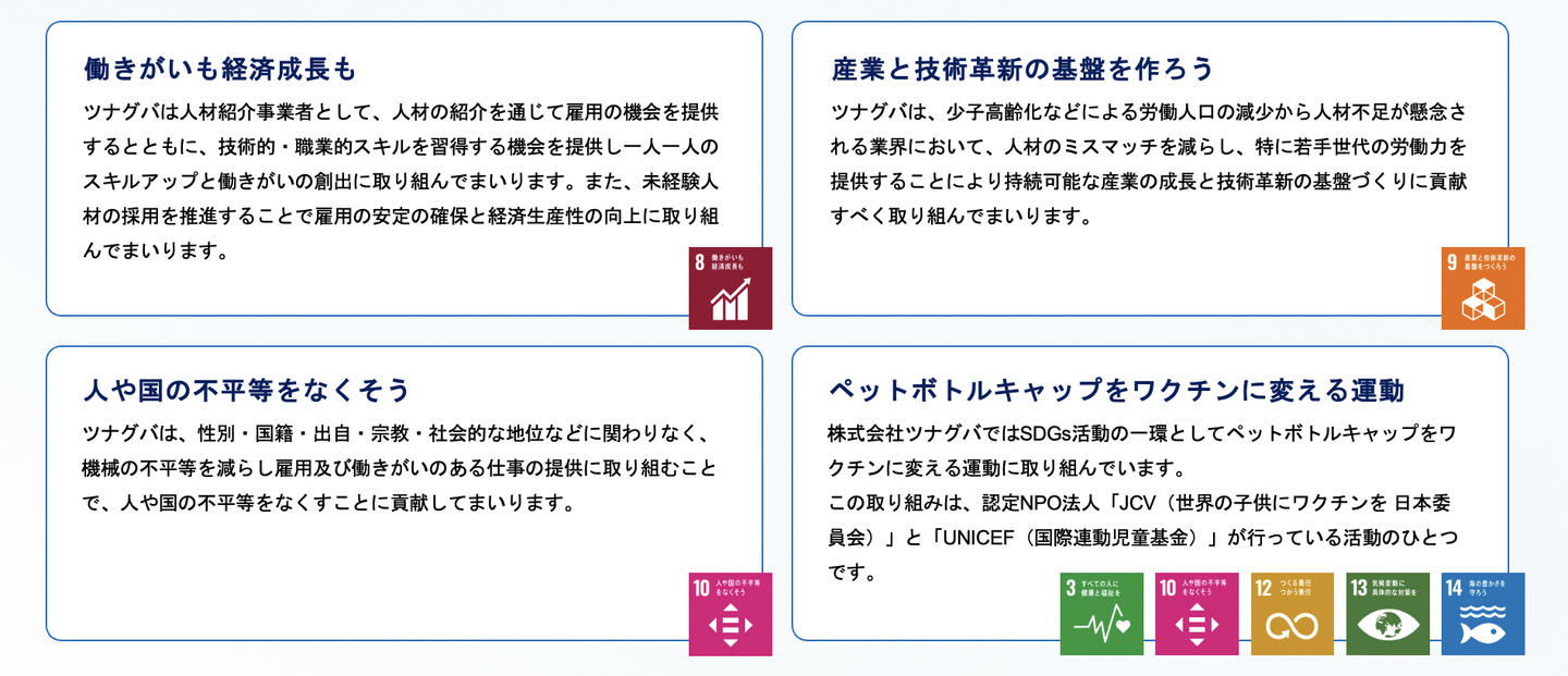世界人口の半数近くを30歳未満の人々が占める中で、持続可能な開発目標を達成する上では、若者たちの有意義かつ効果的な参加が不可欠であることを考えさせられる機会となりました。弊社は「可能性をつなぐ」「20代のキャリア構築支援ならツナグバとなる。」というミッション、ビジョンを掲げて若手層に向けた事業を運営しており、若手世代のキャリア形成を軸に引き続きSDGsの目標達成を目指していきます!