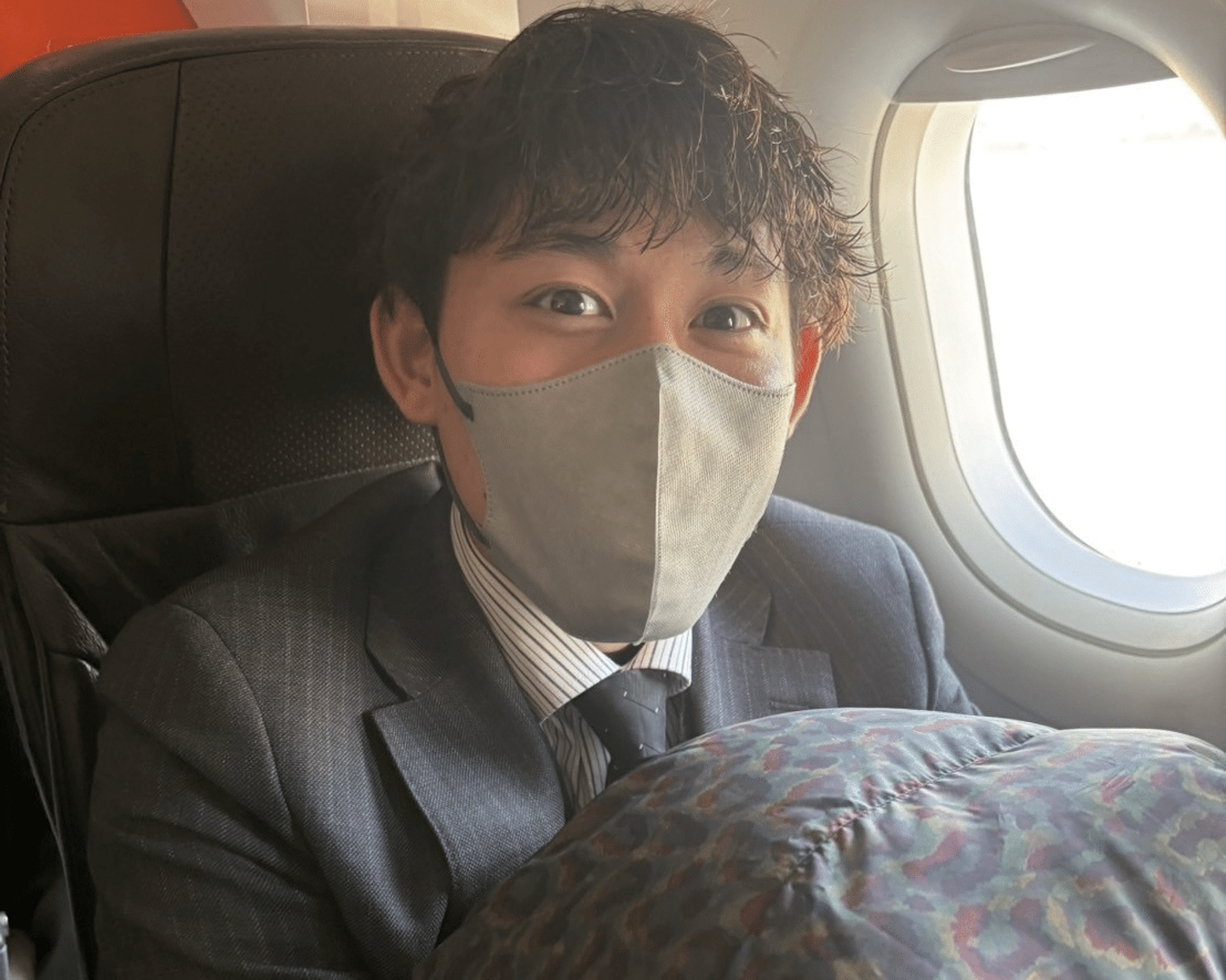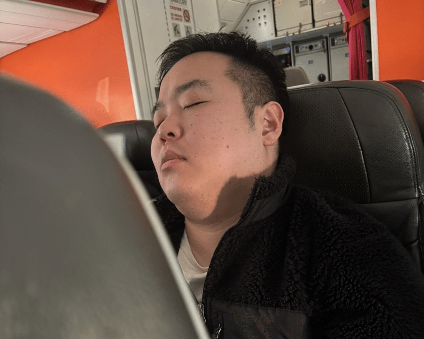 飛行機で寝ているTさん😴