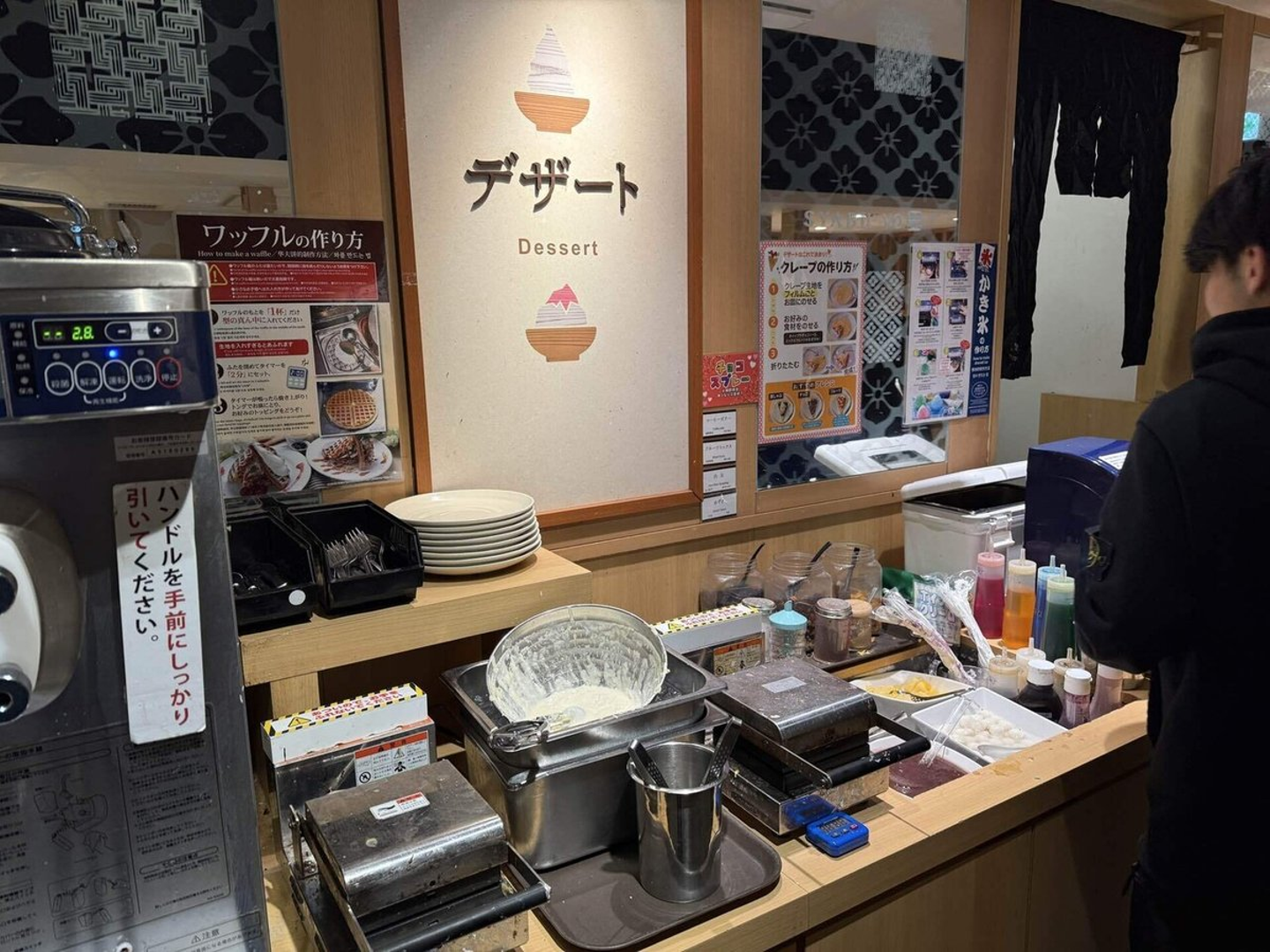 デザートはソフトクリーム、ワッフル、わたあめ、かき氷、クレープが楽しめます🍦🧇🍧