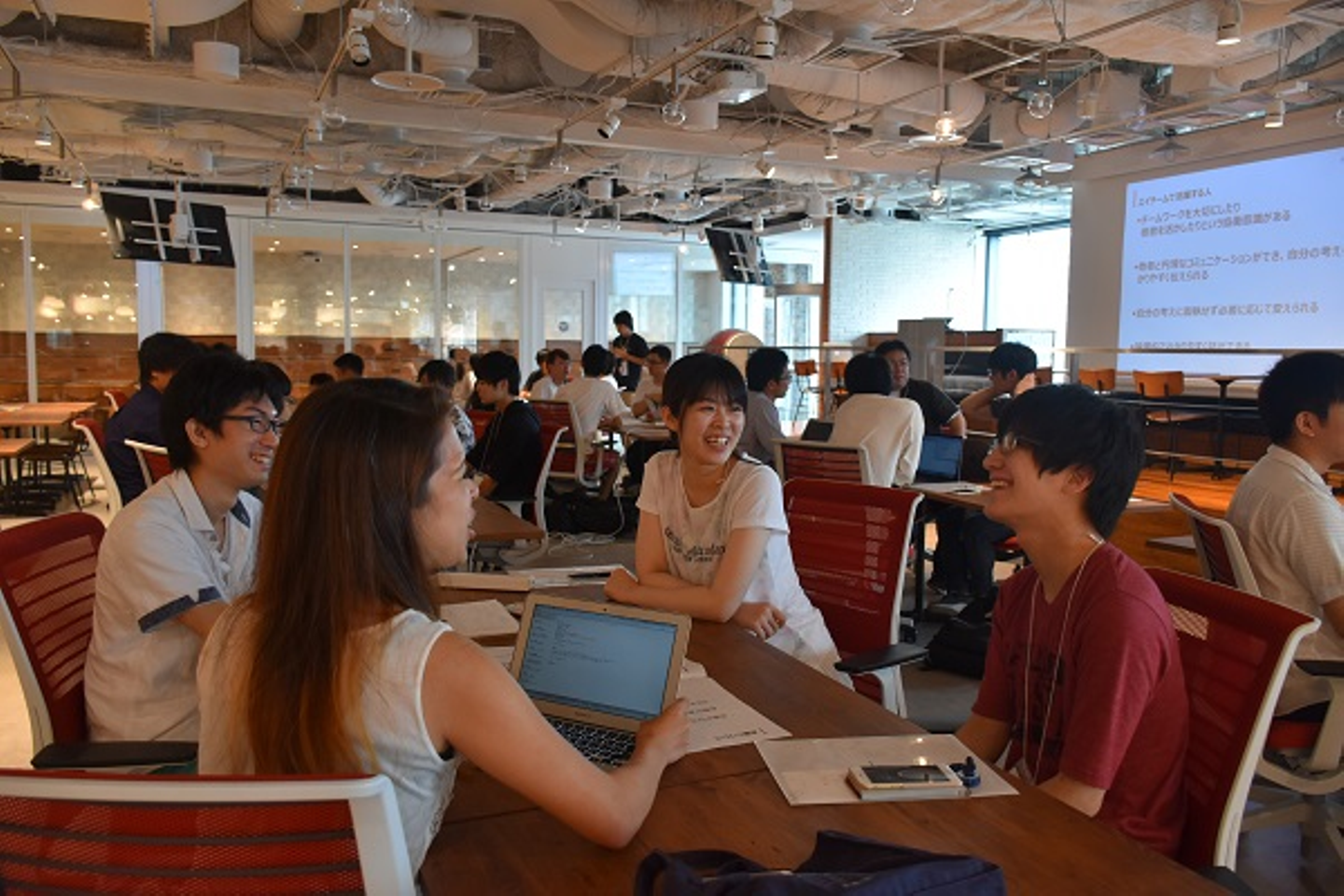 はじめは緊張のせいか、チームメンバー同士話し合いも少なく、個人で問題を解き始めるチームもありましたが、時間が経つにつれ、至る所で課題解決のための議論が盛りあがり、チームの一体感が生まれていきました。