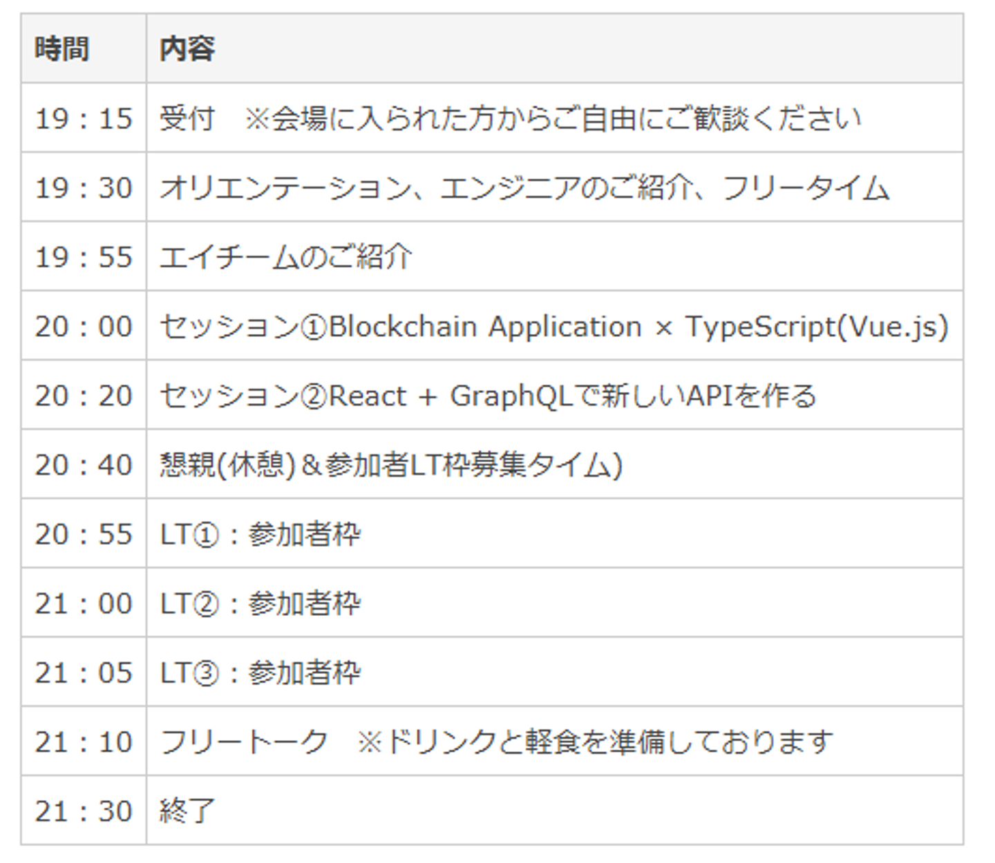 前回の勉強会で大好評だったフロントサイドのセッションに加え、今回はバックエンドのセッションも行います。テーマは、「2018年のトレンド技術振り返り〜ブロックチェーン&GraphQL〜」。新しい技術を積極的に取り入れているエイチーム。今回は、若手エンジニアより、2018年に新しく導入した新技術について、実際の開発事例を交えながらお話します。
