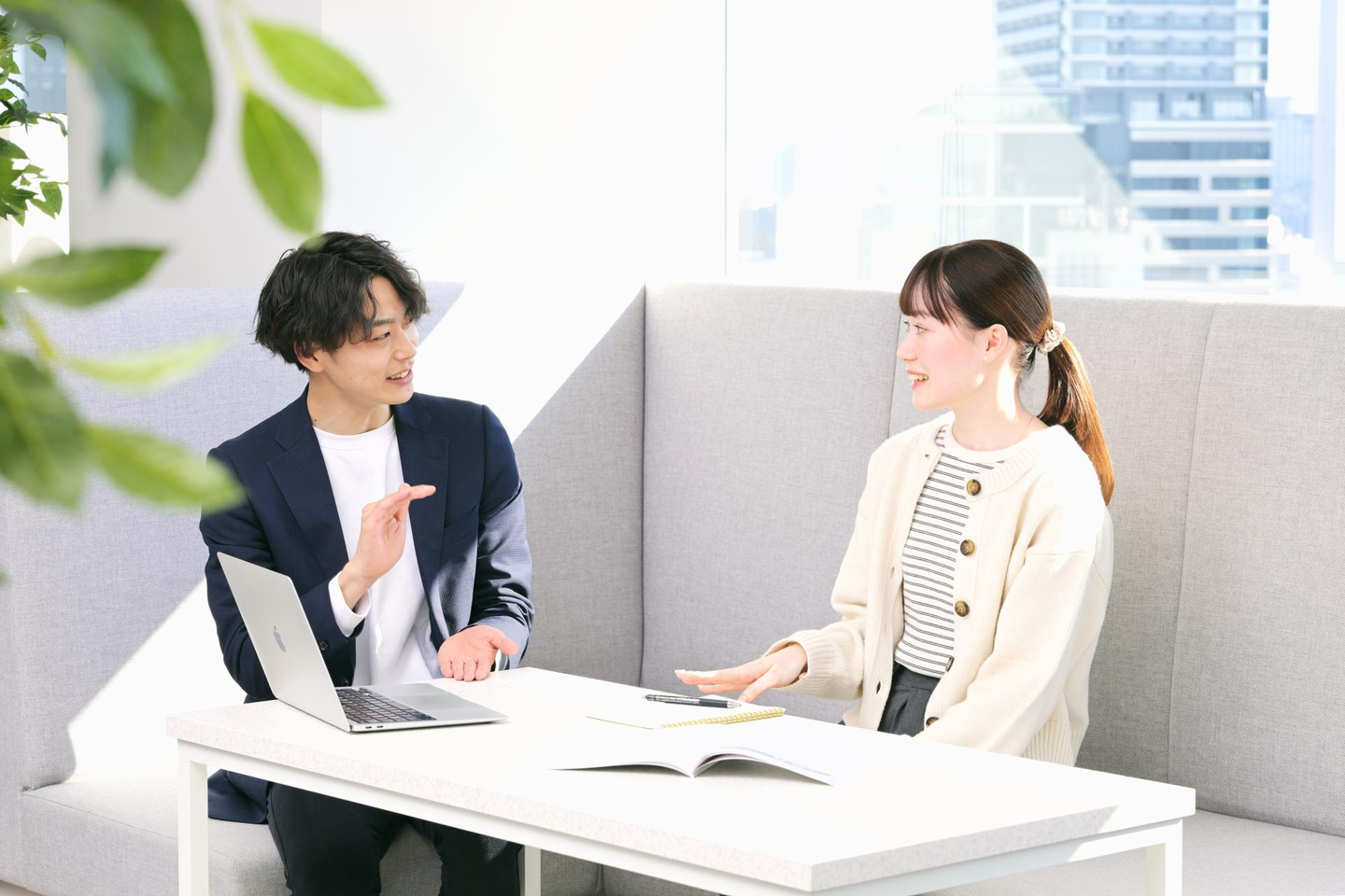 生徒さんのコアタイムに合わせて出社時間は12時。先日ご紹介した「コンサルタント」と同じく、出勤する前にランチを食べたり、朝活をしたり、自分の時間をとってから出社されるという方も多いです。セールスもコンサルと同じで、服装の自由度は高いですが、体験会中はジャケット着用必須となるため白Tを着て出社する方が多いです。