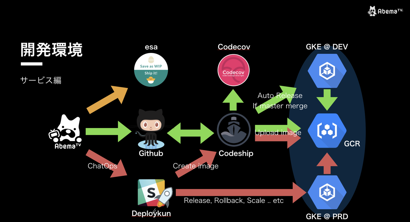 最後にサーバーサイドを支える開発環境について、「AbemaTV」における各サービスの役割をご紹介しました。