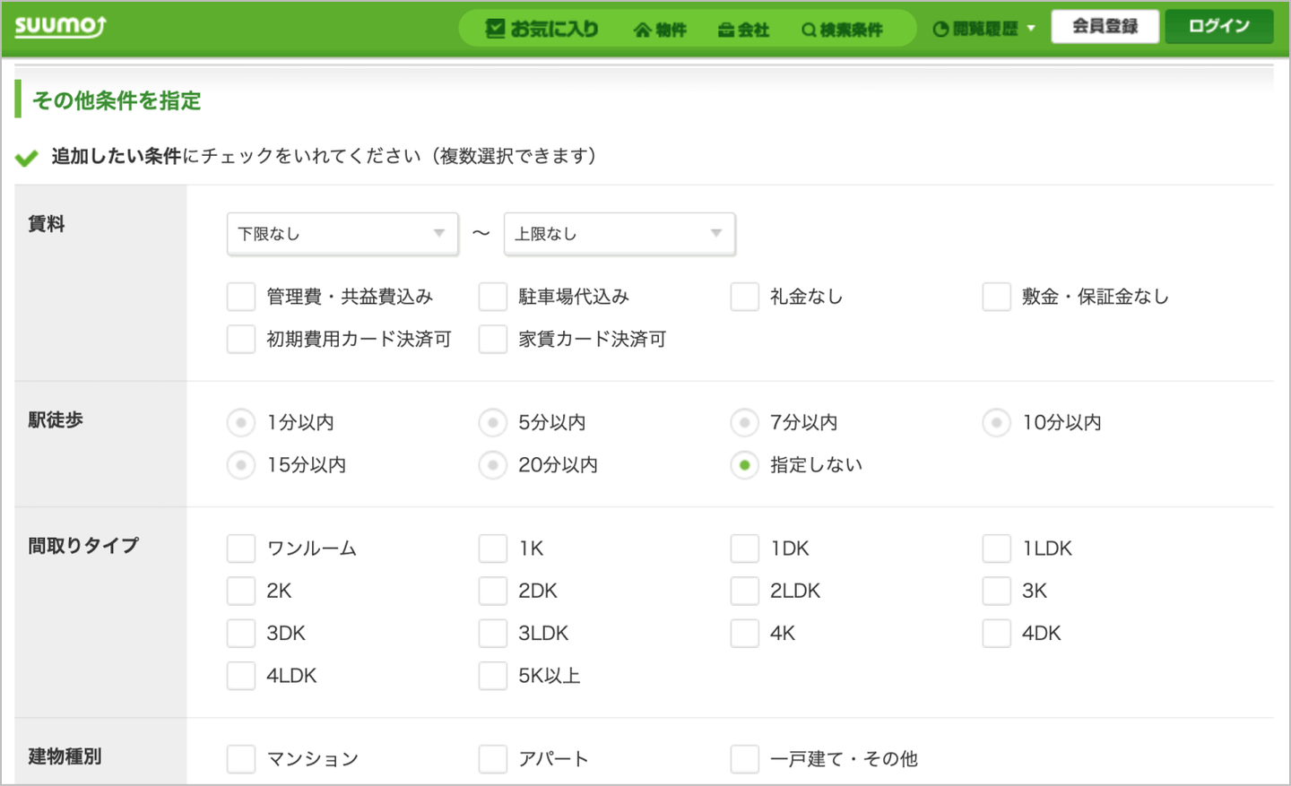 SUUMOではさまざまな角度から検索条件を設定できる