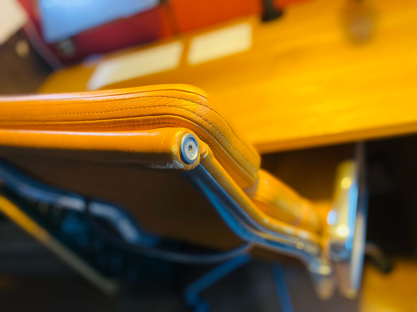 15年位前から使ってるハイバックのアルミナムチェアです。オシャレに撮ろうと子供の絵本やら玩具の山を避けたらカメラ寄るしかなかった。ほんとはデスク周りは常に遊び場でぐちゃぐちゃ。そろそろ書斎がほしいです。