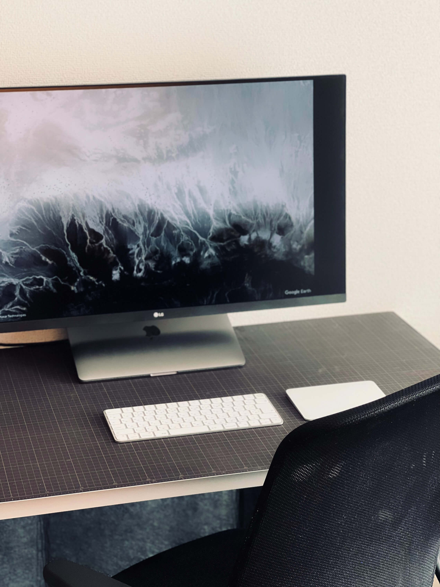 モニターはLGの4K32インチです。Mac+モニターの2画面構成だと目の端がチラついてあんまり集中できないので、基本的にこの大きな画面1枚で作業しています。デスクの上にはできるだけ物を置きたくない派なのですが、このモニターだとUSB Type C コード一本で電源供給+モニタリングができるので、すっきりしていて気持ちが良いです。 ちなみにゲームにも使用していて、視界いっぱいにゲームの世界が広がるので最高です。