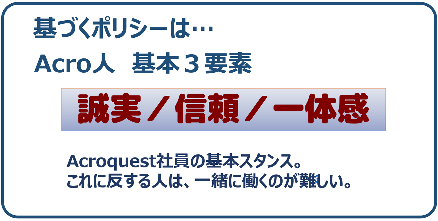 2.文化や価値観が合う人がアクロクエストで働けるようにするためです。