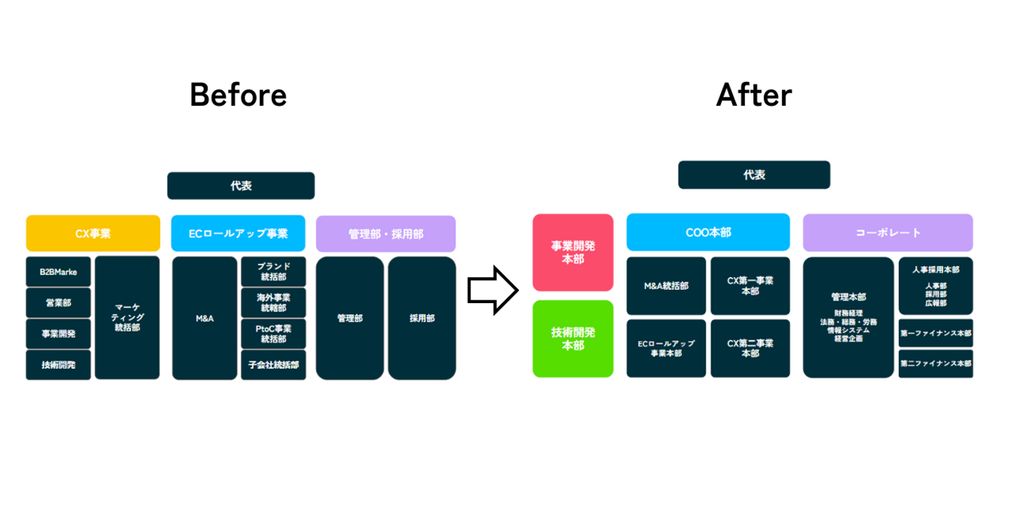 ❶2つに分かれていたCX事業とECロールアップ事業を1つの本部に集約