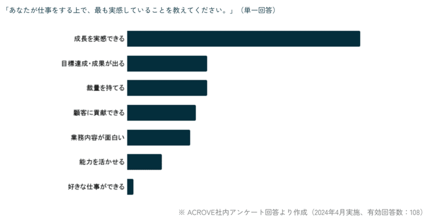 ACROVEで働いていて、最も実感していることは、圧倒的に「成長を実感できる」となりました。