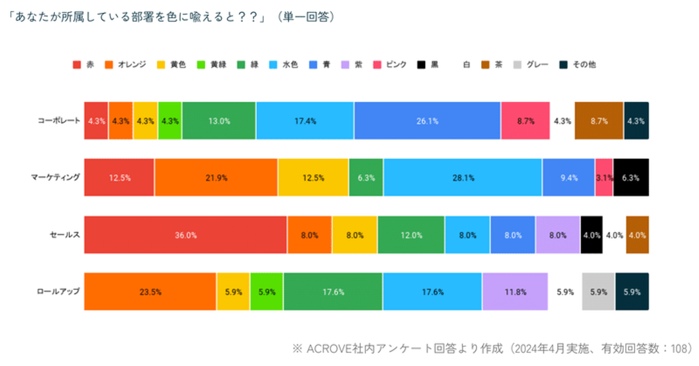 セールス部門では圧倒的に赤で部署を喩える人の割合が高いですね。
