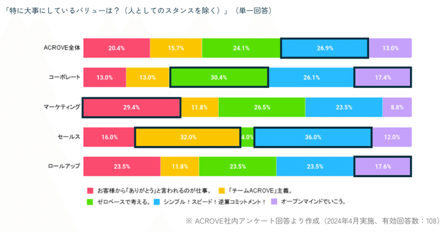 今回は、人としてのスタンスを除いた5つのバリューについて、「特に」大事にしているバリューを聞いてみました!