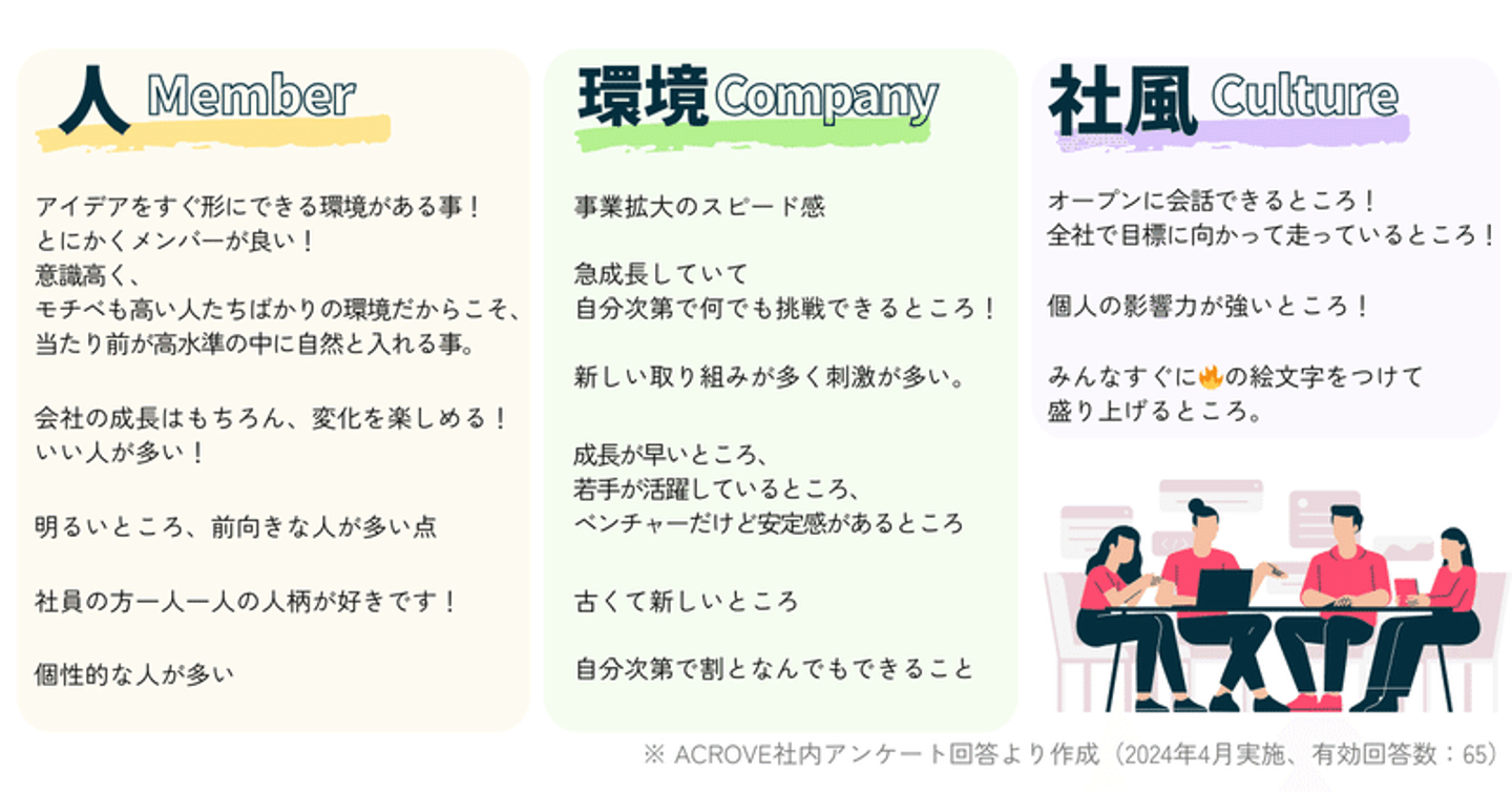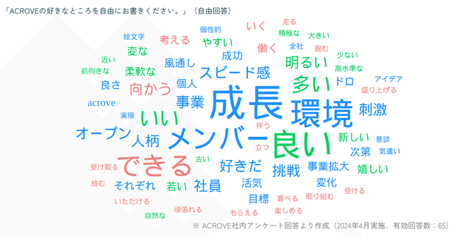 社内アンケートの最後に、ACROVEの好きなところをフリーアンサーで自由に回答してもらいました!