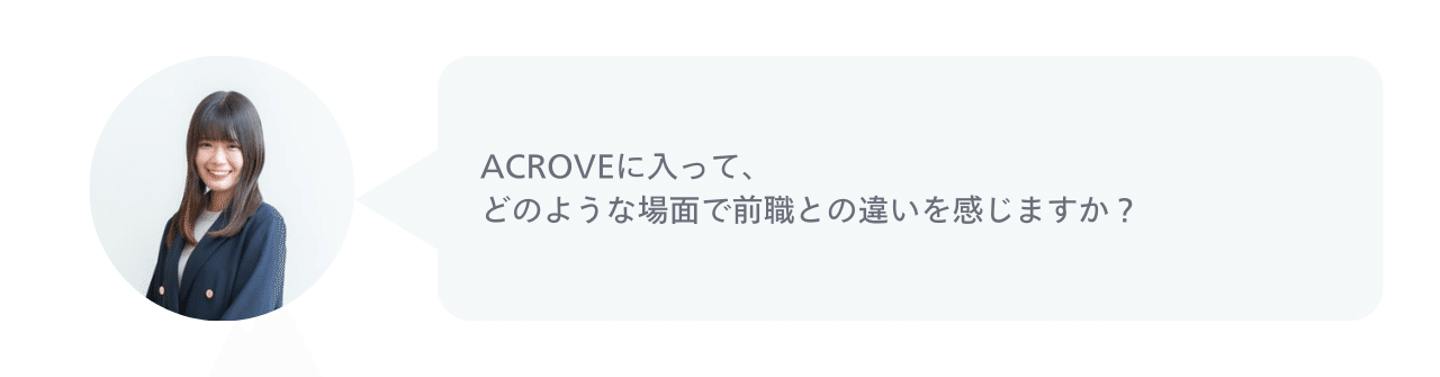 自分よりも上のベテラン層が詰まっていない状態で、会社の組織や風土を1から作っていきたいという私自身の興味と、どんどん新規事業を作っていきやすいACROVEの環境がマッチしていた点も大きかったです。