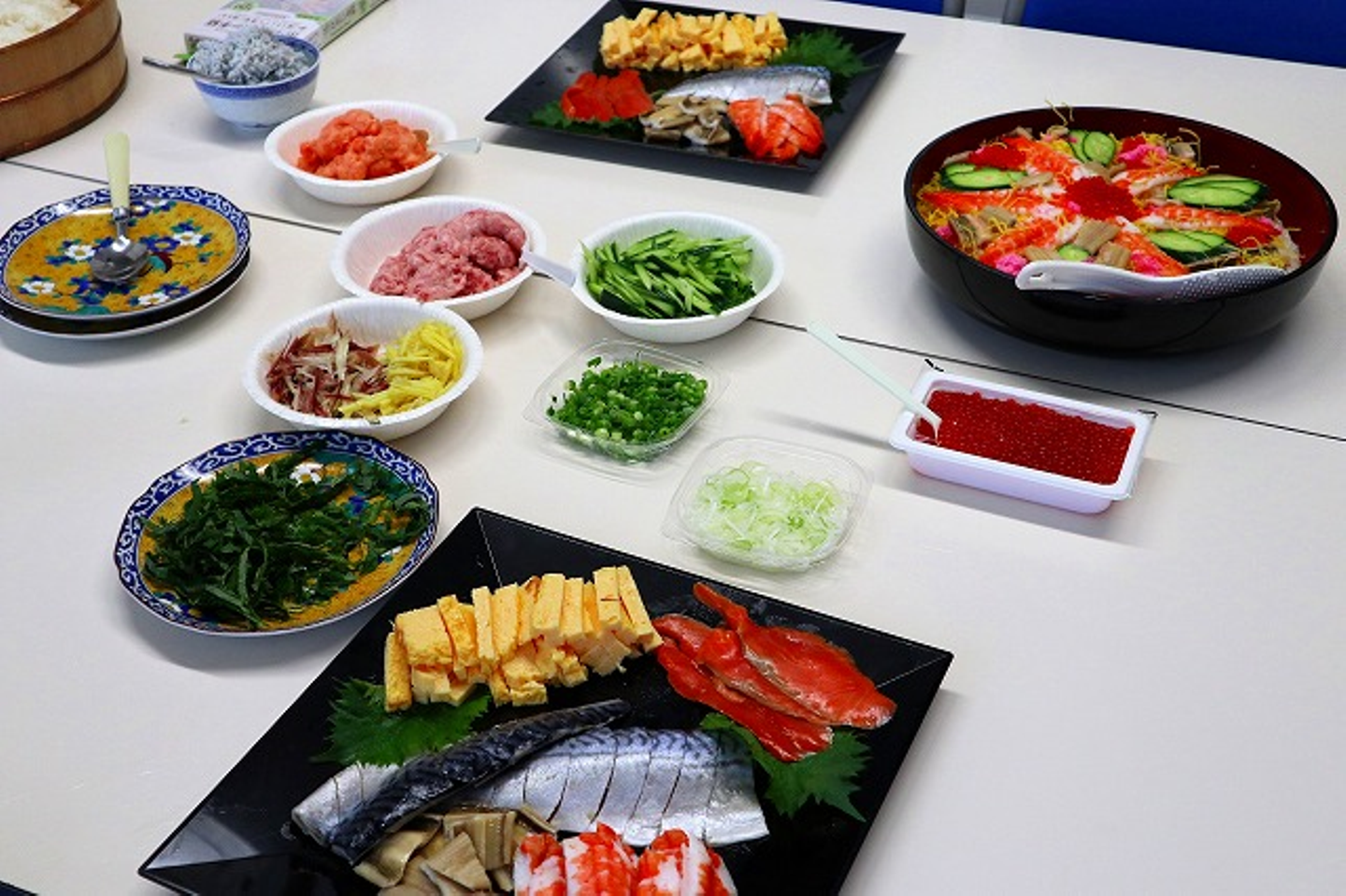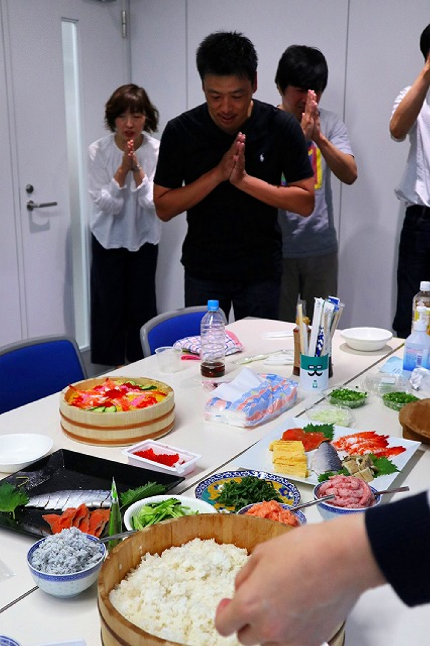 社内で希望者が集まり、サカナバッカさんで注文した魚介をつかったちらし寿司会が開催されました!