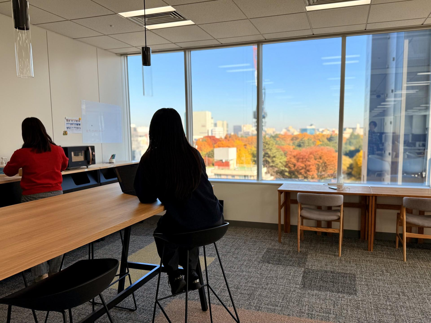 新オフィスでは大きな窓から自然光が差し込み、四季の移ろいを感じながら働くことができます。