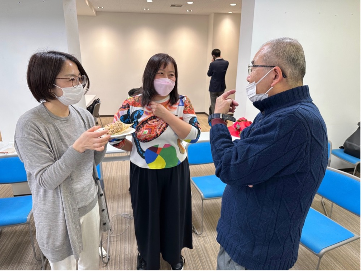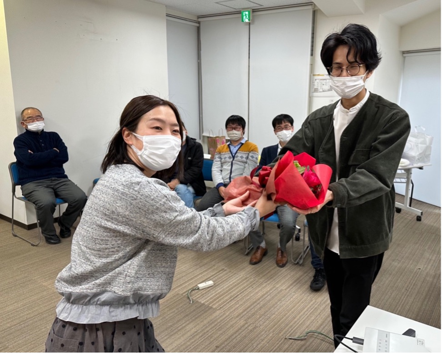 横田さんは、住む場所から懇親会にご参加いただくのに往復で4時間かかりました。それでも皆さんと対面で交流したく、会場まで足を運んでいただきました。夏までには九州へ引っ越し、リモートワークをする予定だそうで、今後会えるのがますます難しくなります、、、とても寂しいですが各人の希望の勤務形態を選択できるので、とても素晴らしい制度だと思います。