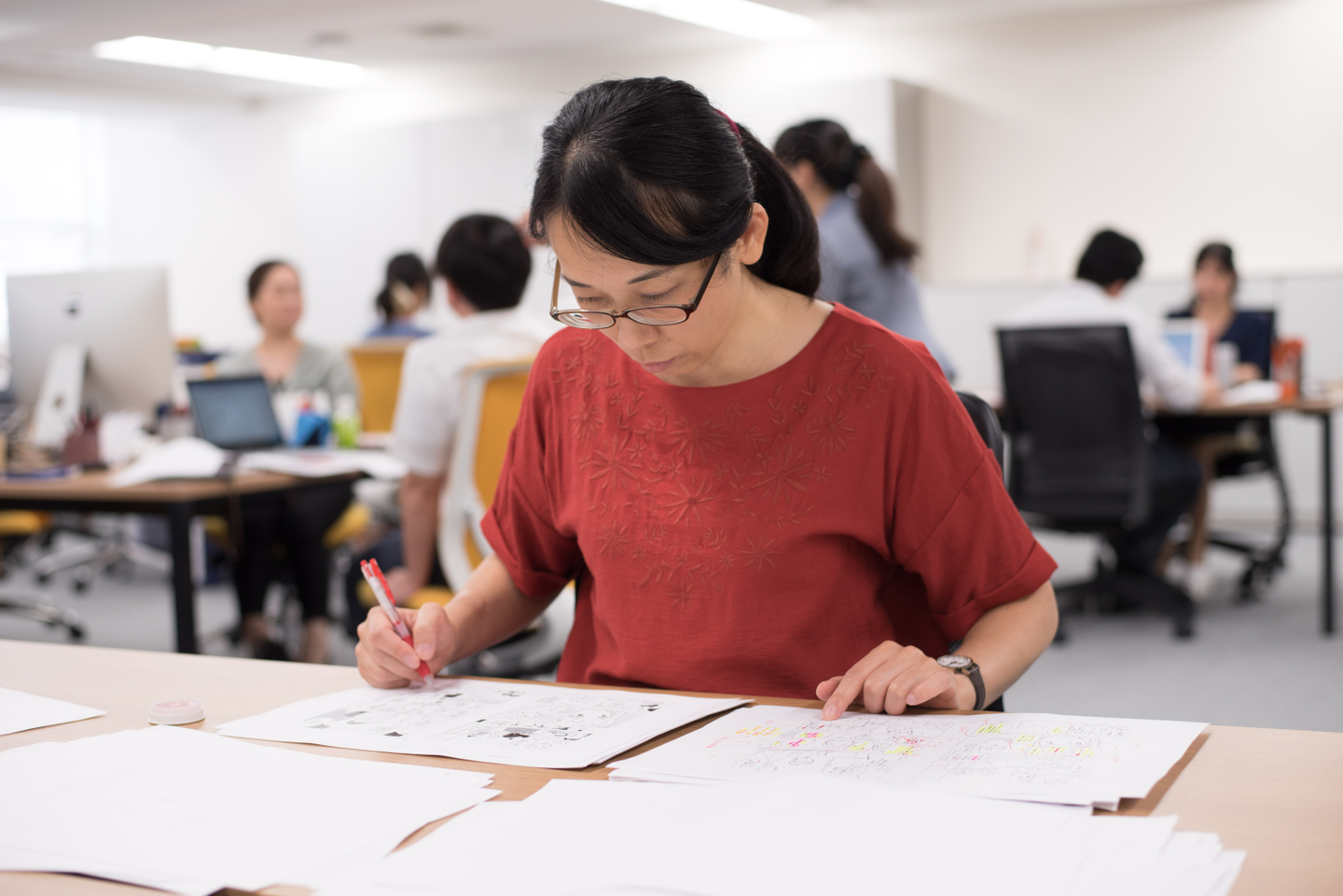 目的に合うようにシナリオやネームに調整をかけたりするのが具体的な業務で、