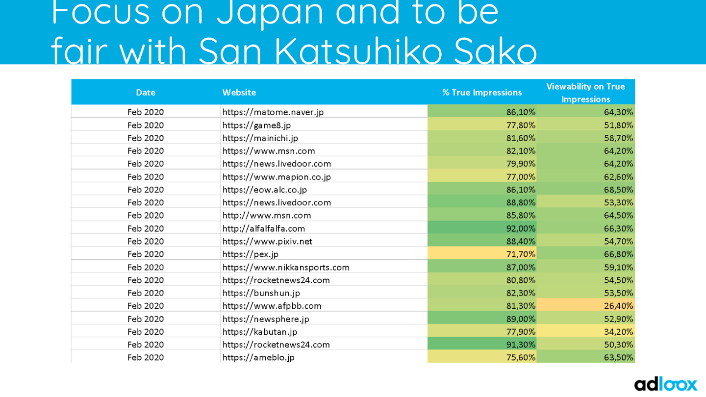 さらに、RomainはAdAsia Premium Marketplaceからアクセスできる日本の媒体社の印象について、AnyMind Groupのクライアントである媒体は優良であり、日本の市場のベンチマークと比較して3倍の「True Impression rate」を持っていると好評しました。