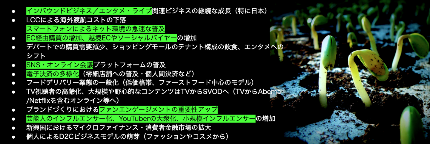 また今後の動向については”リベンジ消費”や”リベンジ旅行”が期待できる。また外出自粛に伴い、ECでの商品購入が増え流に従って、口コミのレビューを重視する傾向にあり、KOL活用施策なども有効だと考えられる。というマーケティングのこれからについても語りました。