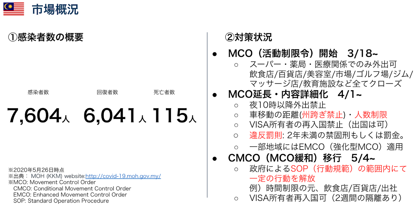 マレーシアでは5/4からは規制がなだらかに緩和。割引などのプロモーションが有効な国であるにもかかわらず、生活必需品以外は買い渋られている状況であることについて語り、流行やトレンドという面で考えると、オンラインエクササイズなど在宅需要に関連する商品やサービスの消費が増えていることなどについて語りました。