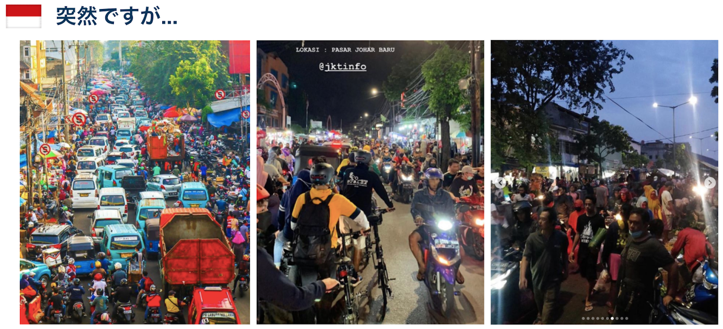 インドネシアのリアルな写真を用いて現地の様子に触れ、現地では政府の要請を無視して、かなり外出している人も多いものの、全体としては感染者数も減っており、徐々に対策も緩和されてきていると語りました。