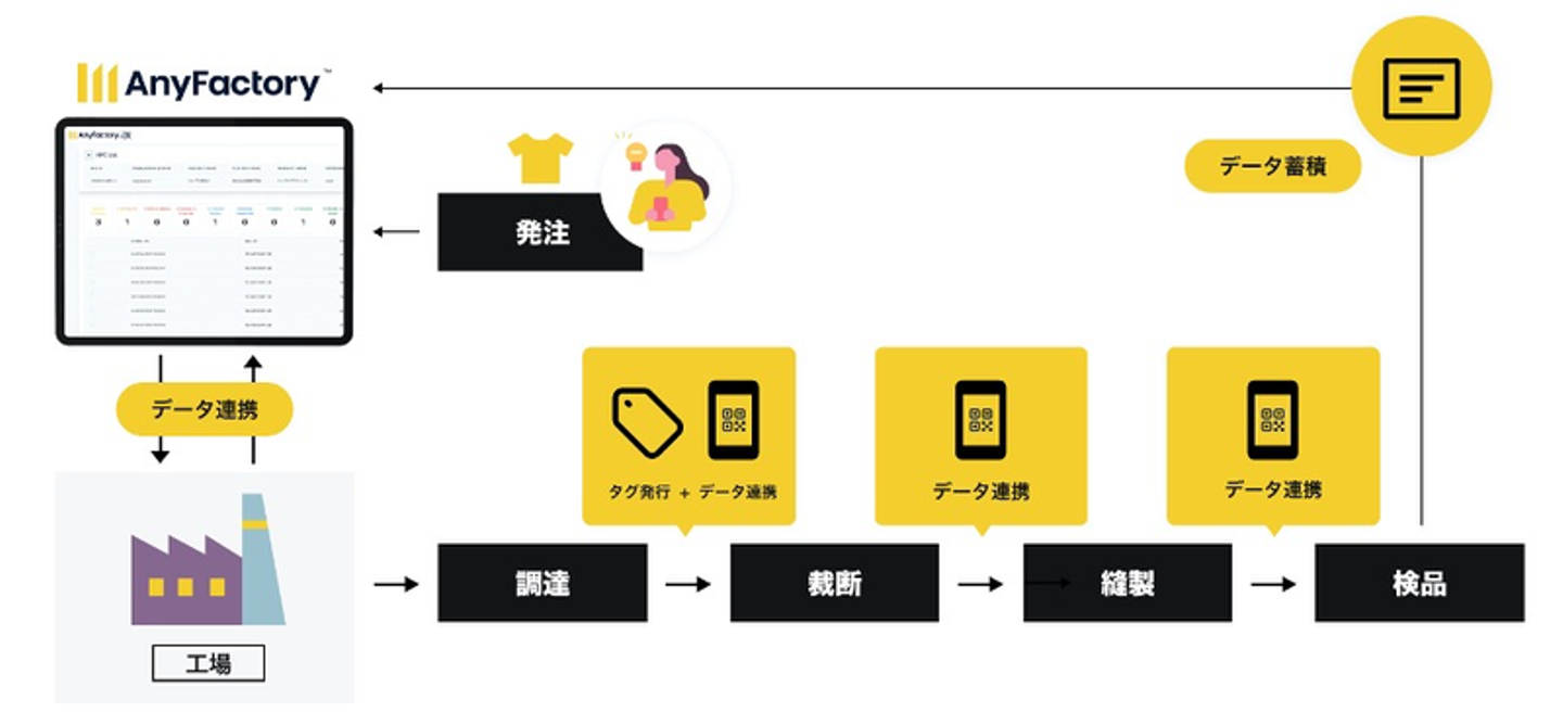 AnyMindは2021年10月29日にアパレル生産を得意とする株式会社服飾工房絲 (本社:群馬県桐生市、代表取締役:佐久間 茂)と共同で、アパレル生産工程におけるアイテム一枚ごとのリアルタイムトラッキングを可能にする新機能「Supply Chain Unique トラッキング」の実証実験を開始するというプレスリリースを発表しました。