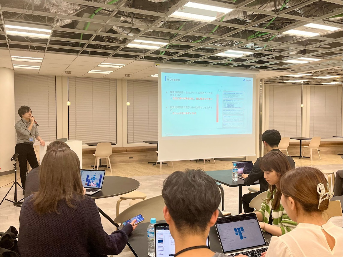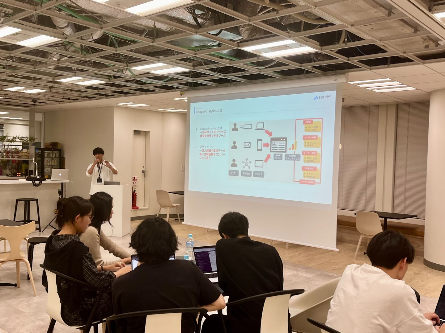 第一回は「GA4、SEOの最新市場の説明と今後の考察について」をテーマに、フォーエムチームが講義をしてくれました。